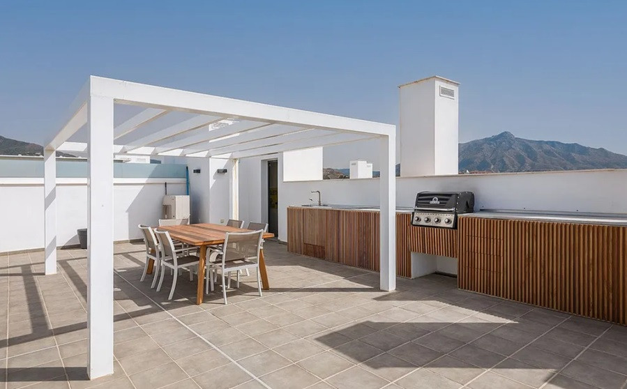 Located in a recently built development, in a prime position just steps from the center of San Pedro de Alcántara, this elegant penthouse combines modern design, comfort, and an unbeatable location, surrounded by all amenities: charming cafés, supermarkets, pharmacies, and schools.