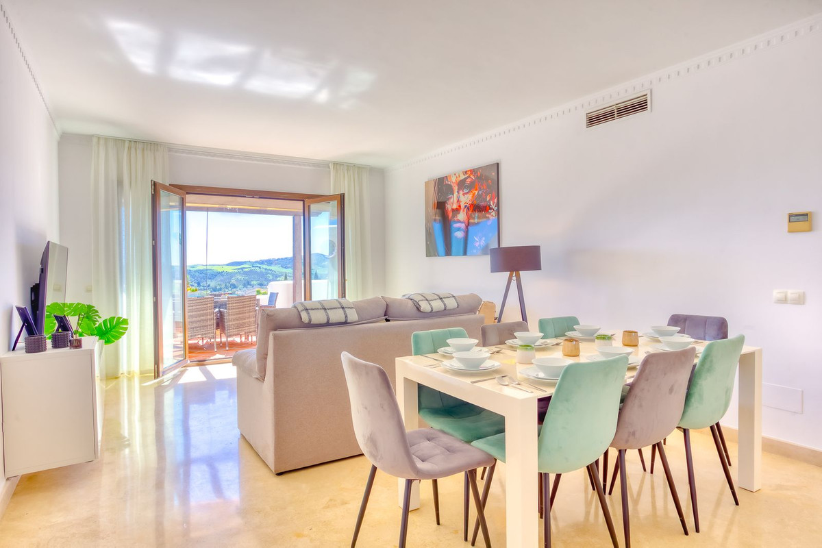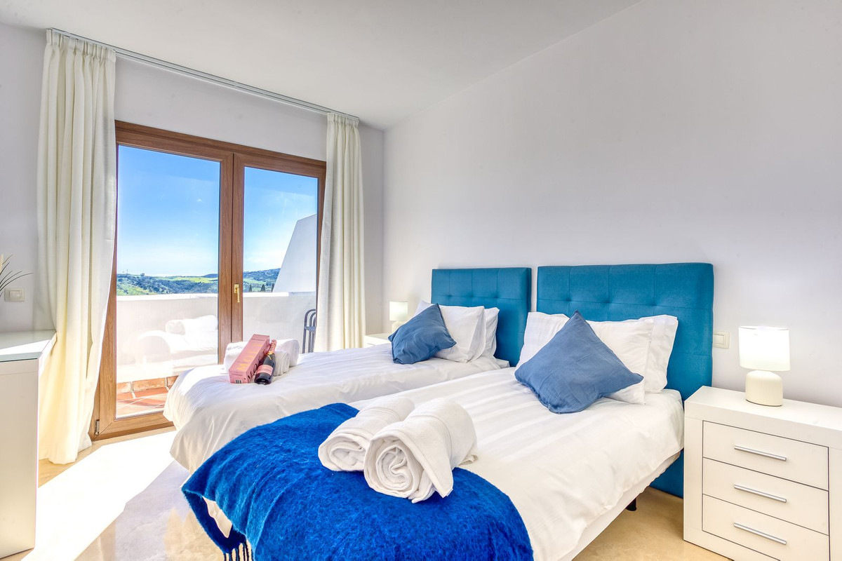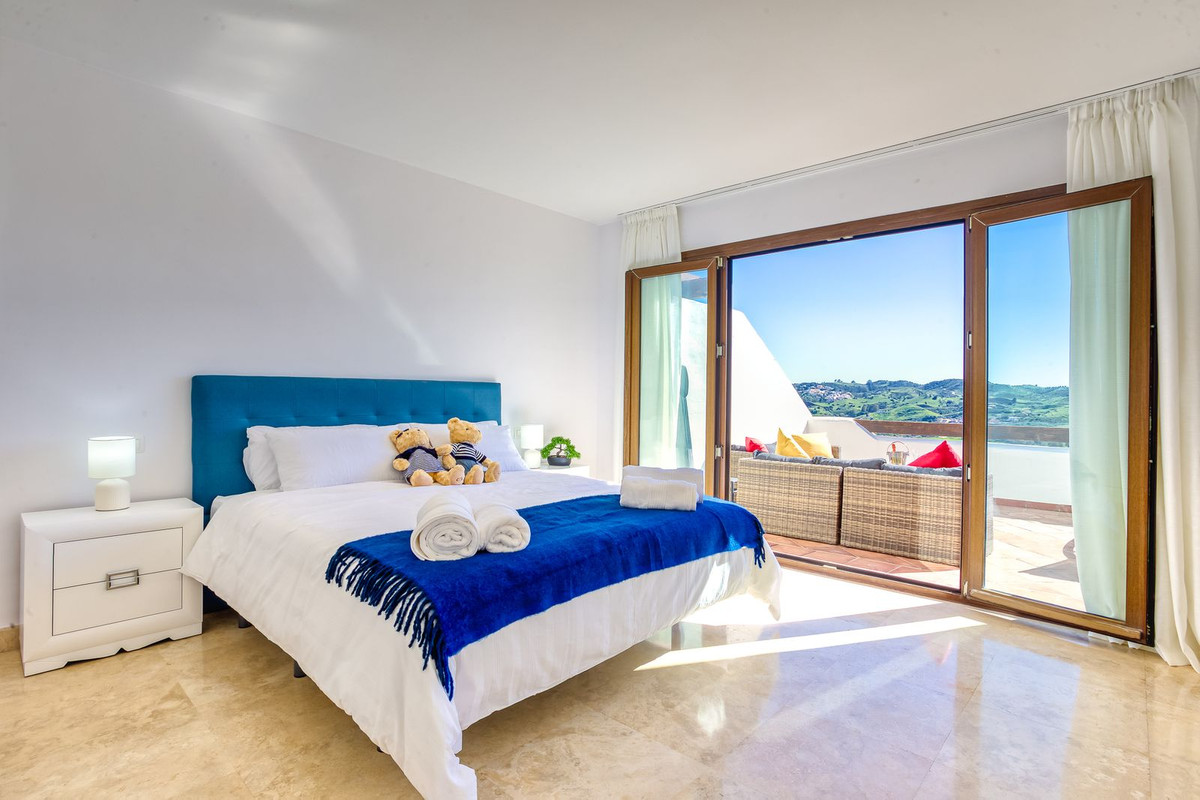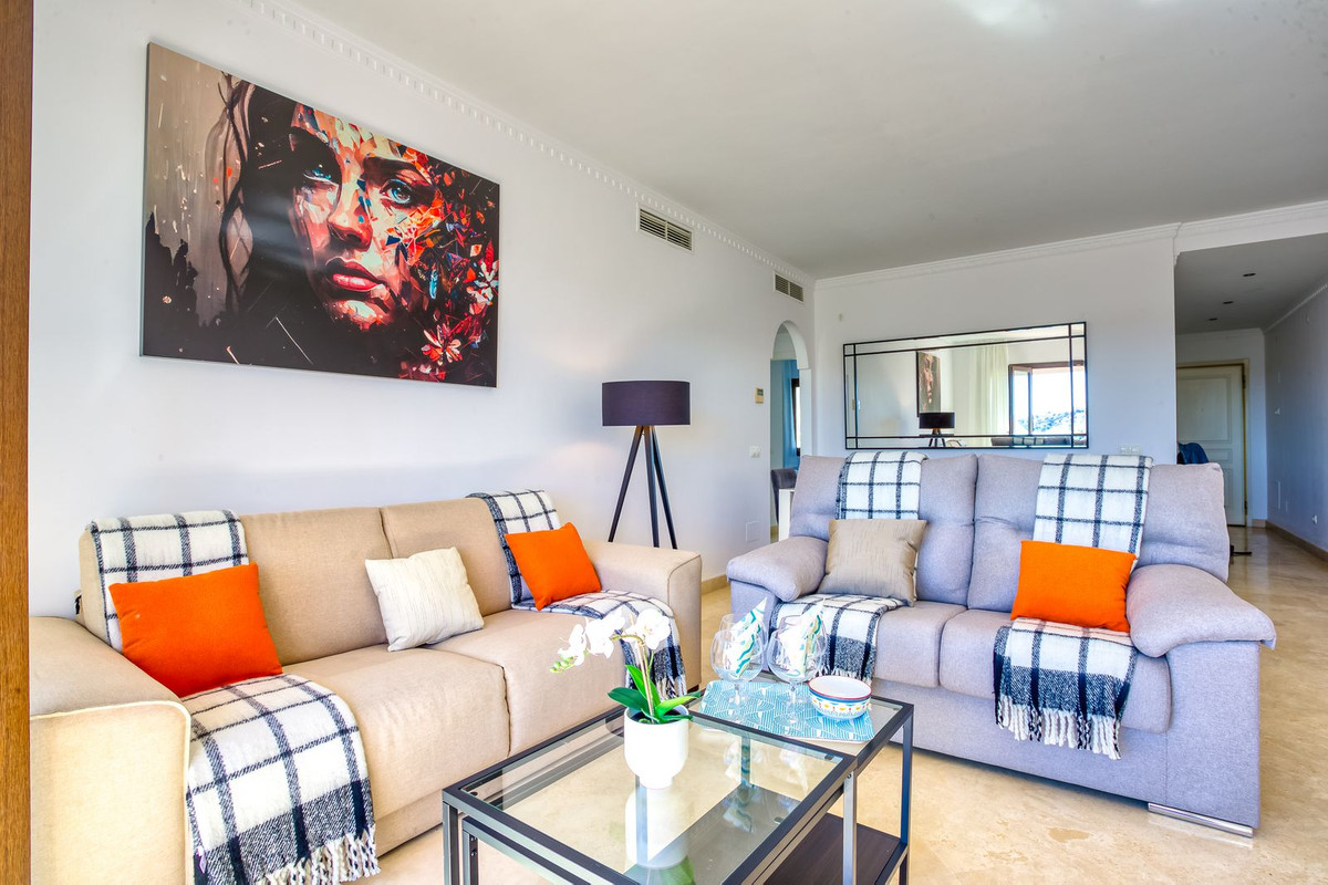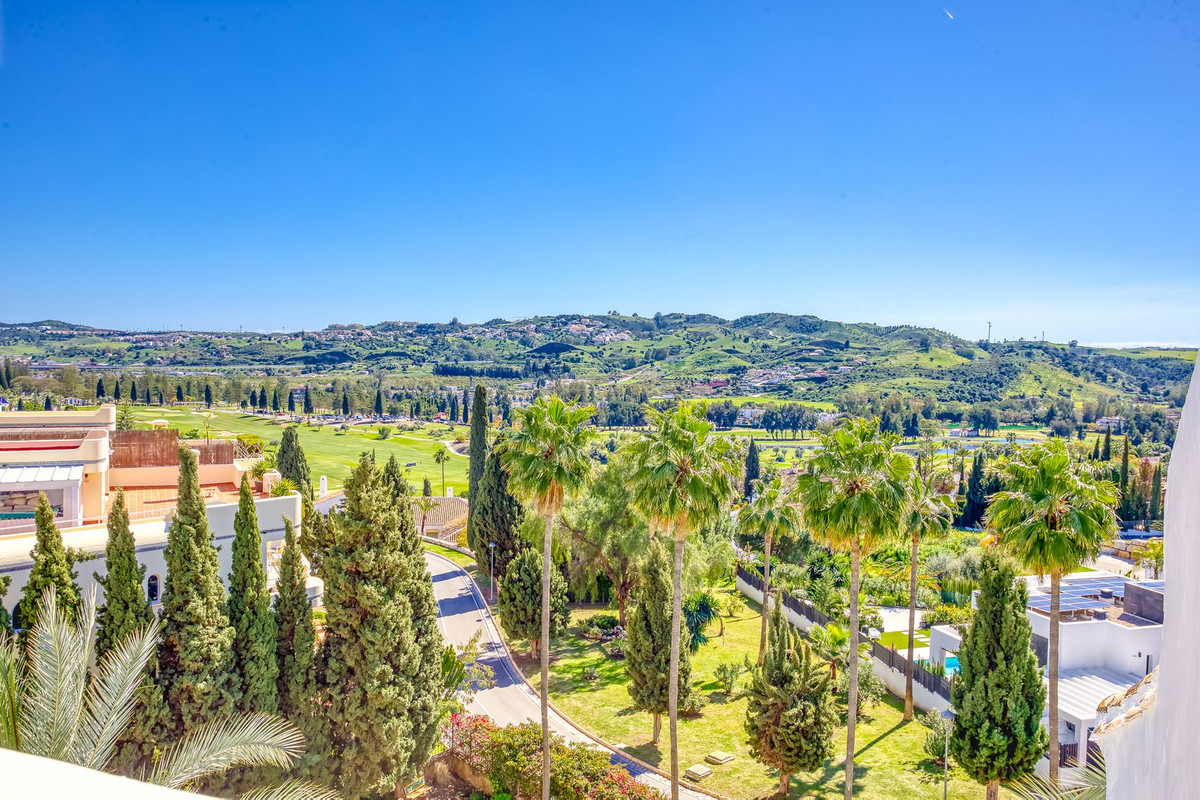 This south-facing penthouse boasts panoramic views over the lush fairways of Mijas Golf and the surrounding mountain range. Enjoy sun-drenched terraces and a peaceful setting, all within easy reach of local amenities.
