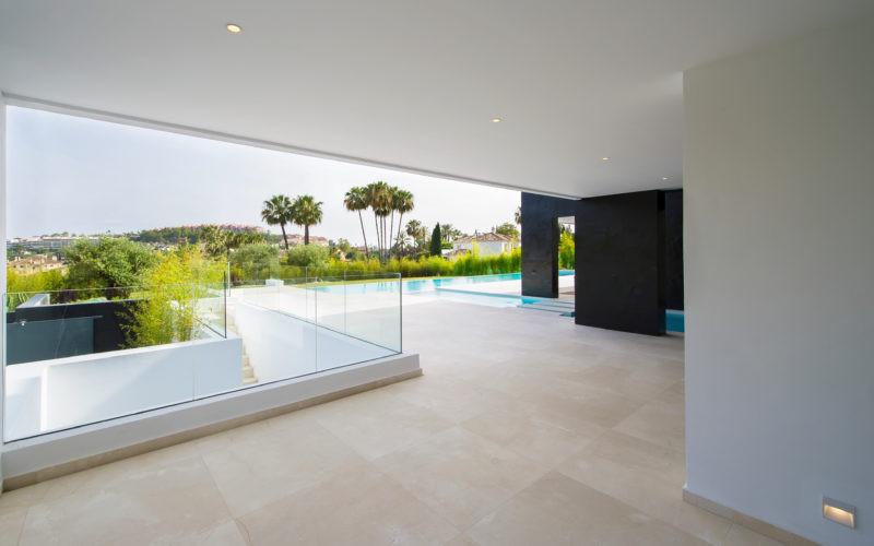 Brand new designer villa overlooking Las Brisas golf, situated second line to the golf course on an elevated corner plot of 2500m2. Maintenance free level flat gardens with bamboo fencing, giving total privacy. Entrance cascading waterfall, garage entrance through security gates in to the underground garage and car port parking for an additional 3 cars. Huge infinity swimming pool with neon lighting and partial west facing sea views.