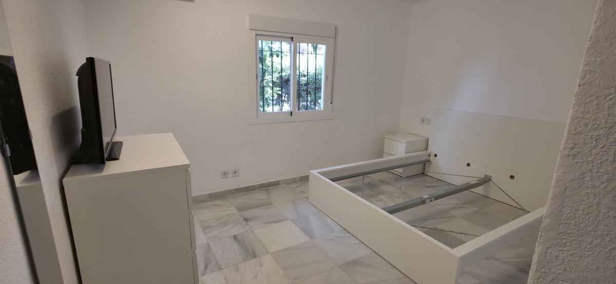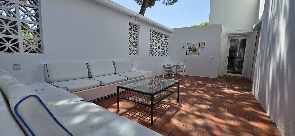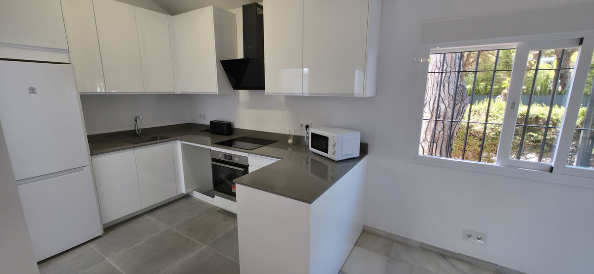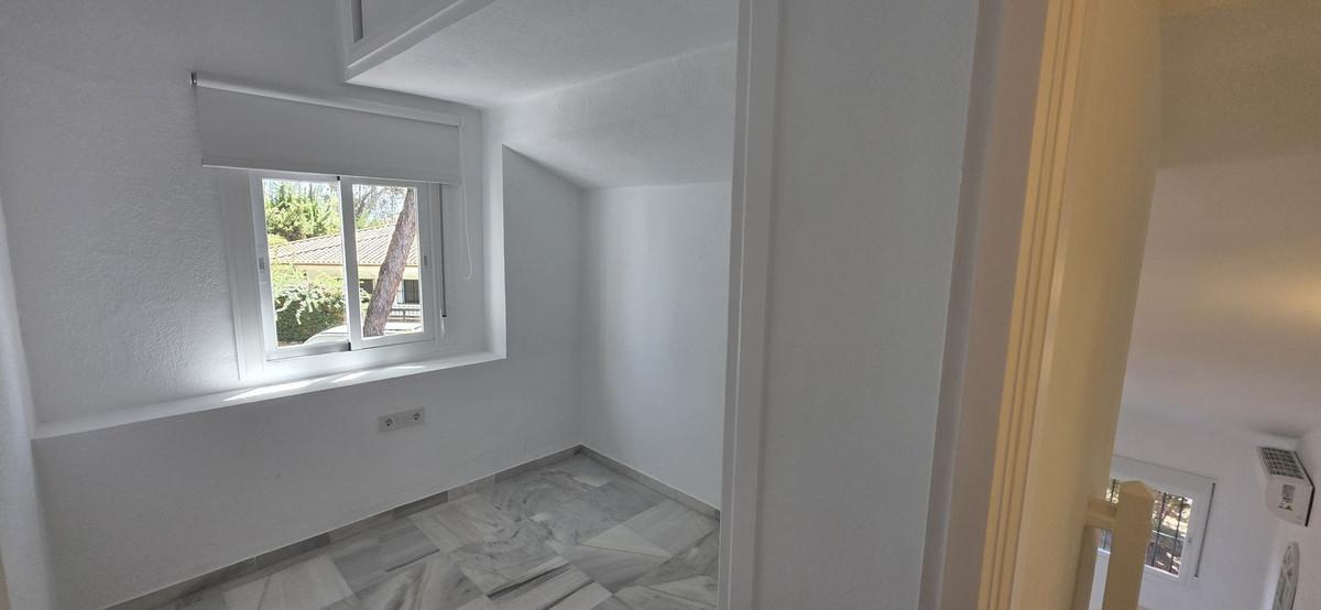 Corner Townhouse beachside between San Pedro and Estepona. Recently reformed this 4 bed 3 bath property sits in the wonderful Benamara complex walking distance to the beach. Modern brand new open plan kitchen leading to the dining and living area. 2 bedrooms on the ground floor sharing one bathroom. Large terrace with seating area and laundry room. Upstairs a further 2 bedrooms and 2 bathrooms. Master bedroom with en suite and terrace overlooking the beautiful gardens and pool area. The property has been reformed to a good standard with new electrics, air conditioning, 2 new bathrooms and new windows.