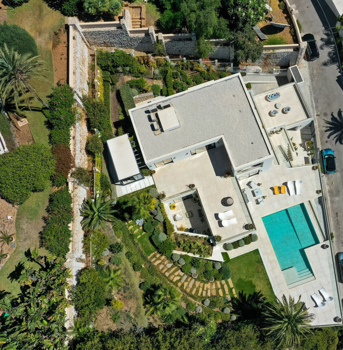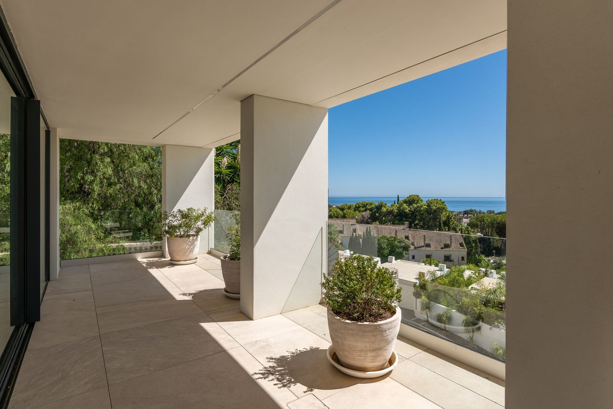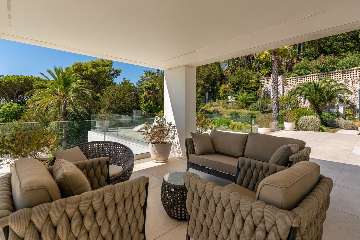 This stunning villa, fully renovated in 2023 with the finest materials, is south-facing and offers a panoramic view of the Mediterranean Sea and the Strait of Gibraltar, in a setting of total privacy with no overlooking neighbors.