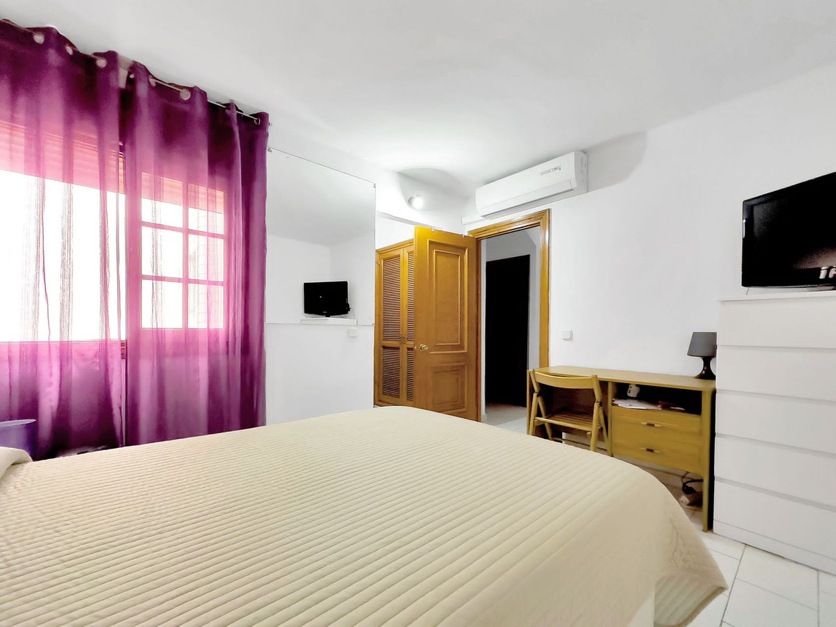 The main bedroom has long windows with plenty of light and an adjacent bathroom..