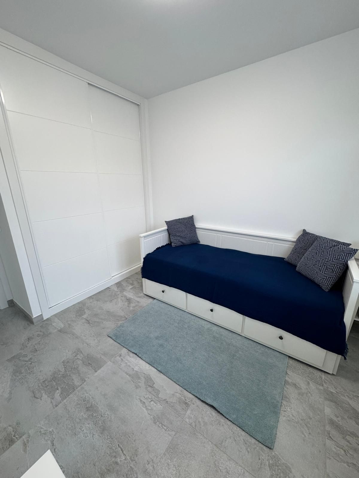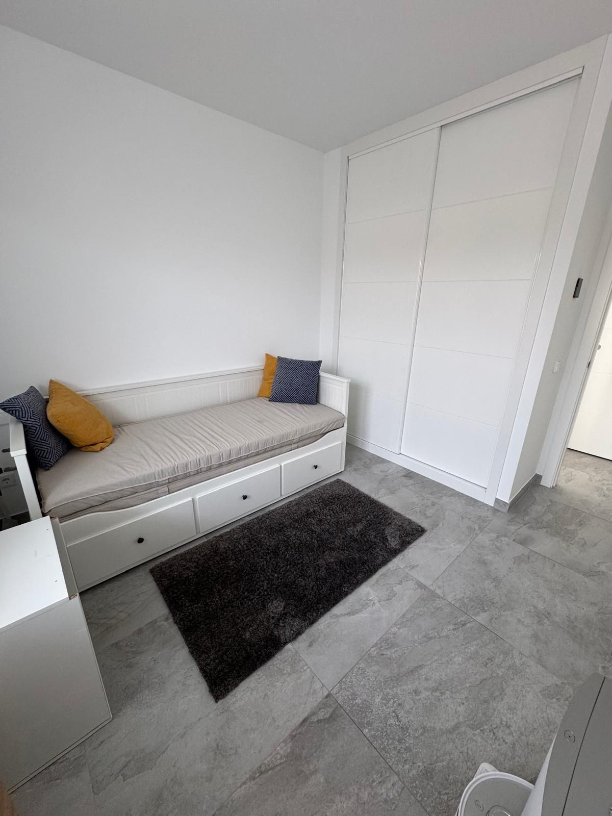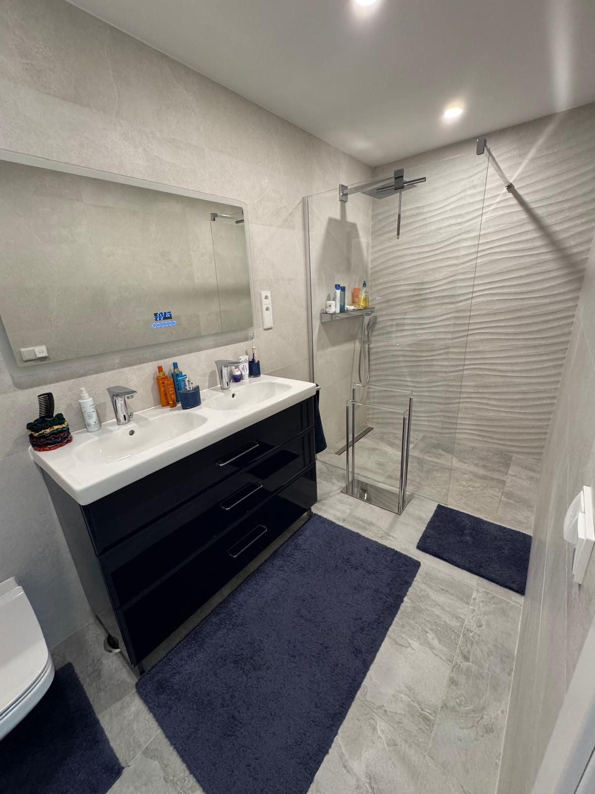 The perfectly designed penthouse offers three spacious bedrooms, all featuring built-in wardrobes and electric blinds on the windows. The main bedroom boasts an en-suite bathroom with double sink and a tiled walk-in shower with a rain shower head. The other two bedrooms share a second bathroom, also with a walk-in shower. In addition, there is a laundry room with additional storage space and a washer/dryer, underfloor heating throughout all the apartment, centralized air conditioning hot/cold, and an additional 2 water filters installed.