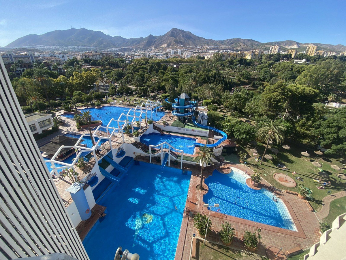 Perfectly located in the sought-after Benal Beach complex, this bright 9th-floor studio offers unbeatable pool and mountain views and access to some of the best facilities on the Costa del Sol.