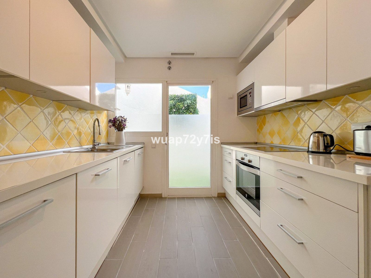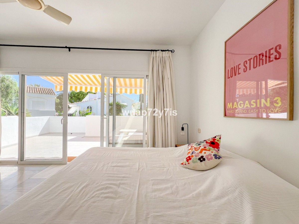 Tucked away in the prestigious gated community of Camoján Blanco, this beautiful townhouse captures the essence of Marbella living. With only 27 homes in the complex, surrounded by lush tropical gardens and a spectacular saltwater pool with beach effect, it’s a private oasis just minutes from Marbella’s vibrant center and golden beaches.