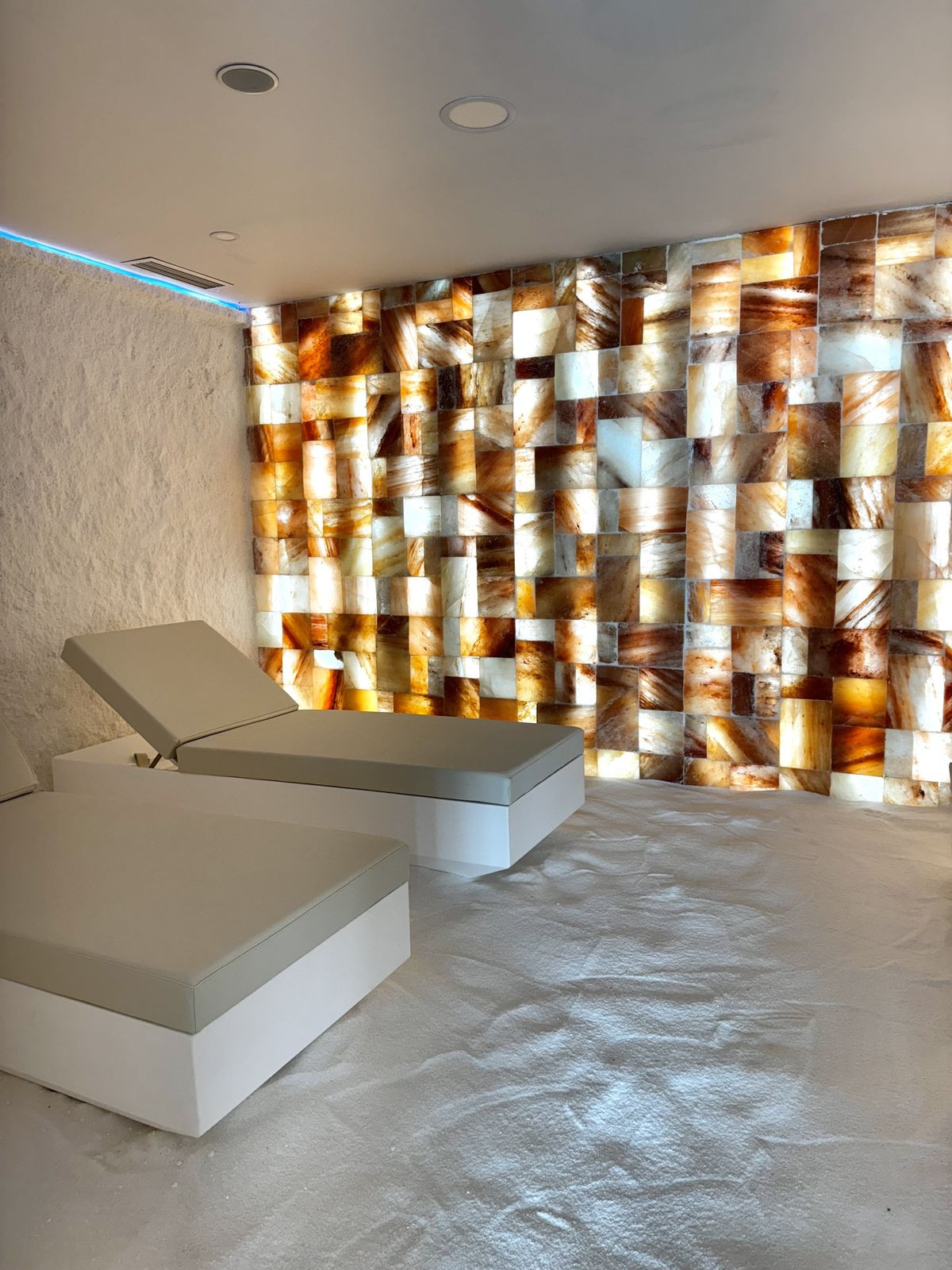 Wellness area: heated indoor pool, hammam, sauna, contrast shower, jacuzzi, massage room, and the first private Salt Cave in southern Europe.