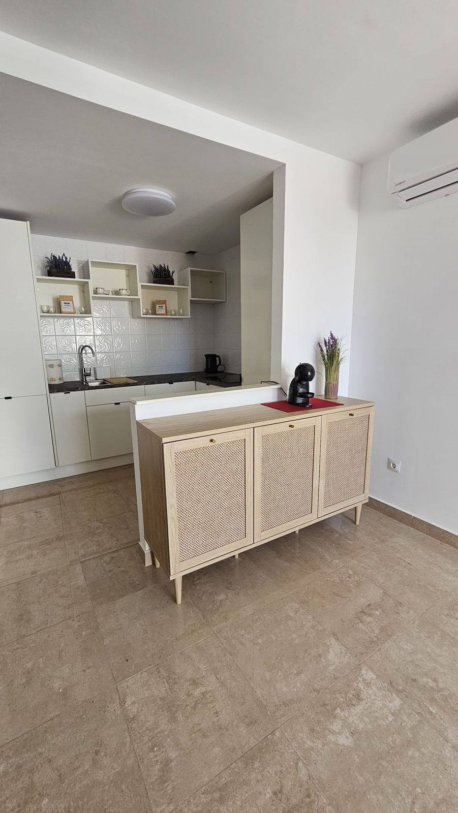This beautiful two-bedroom, two-bathroom, raised ground-floor apartment is located in a residential area of ​​Andalusian-style townhouses. The property was completely renovated in 2025 and comes fully furnished. The terrace and all windows offer beautiful sea views.