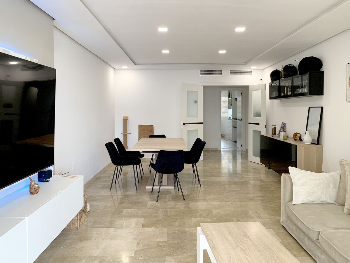 Discover your new home in this spectacular renovated ground-floor apartment! Enjoying a prime location just 15 minutes from Estepona and San Pedro, this bright 106 m² apartment features two spacious bedrooms, one en suite, perfect for enjoying tranquility and comfort. The modern kitchen and renovated bathrooms add a contemporary touch to the cozy atmosphere.