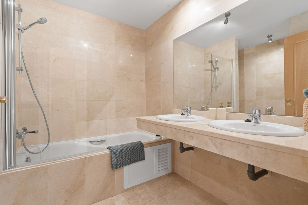 Discover the perfect coastal retreat in this spacious ground floor apartment located on the sought-after New Golden Mile, just a stone's throw from the beach(100 meters). With a generous total area of 163 m², this property features two well-appointed double bedrooms and two large bathrooms, making it ideal for families or those seeking extra space. The exquisite living and dining room opens to two semi-covered terraces, perfect for enjoying the Mediterranean climate.