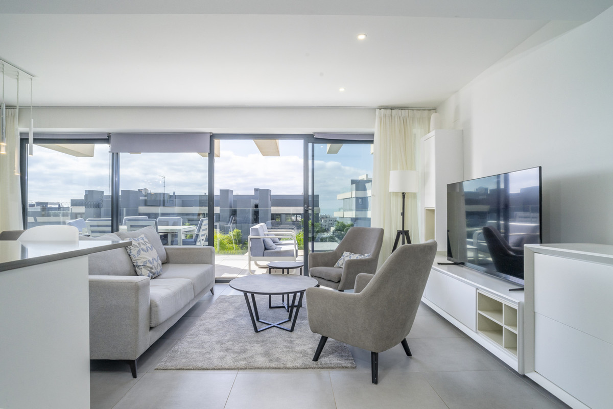 The apartment features an open-plan layout with a bright living and dining area, a fully equipped contemporary kitchen, and direct access to a generous private terrace – the ideal spot to enjoy the sunshine and coastal breezes. The three well-proportioned bedrooms include a luxurious master suite, designed for relaxation and convenience. Fully furnished including outdoor furniture. Proven rental track record.