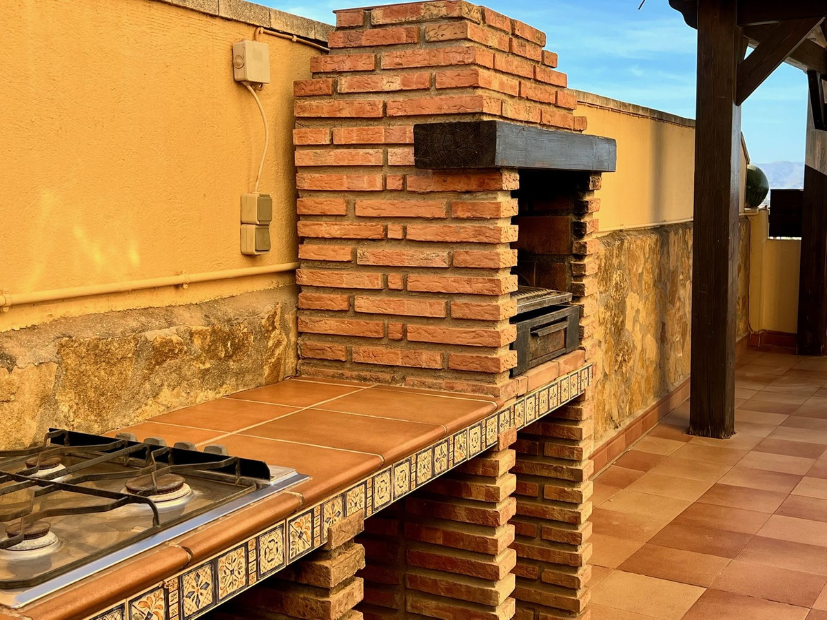 Ground floor: Bright living room with fireplace, air conditioning, and direct access to a spacious terrace with lovely views and a private pool. Independent, fully equipped kitchen with dining area and direct access to a barbecue space and summer kitchen. Also on this level: one bedroom and a guest toilet.