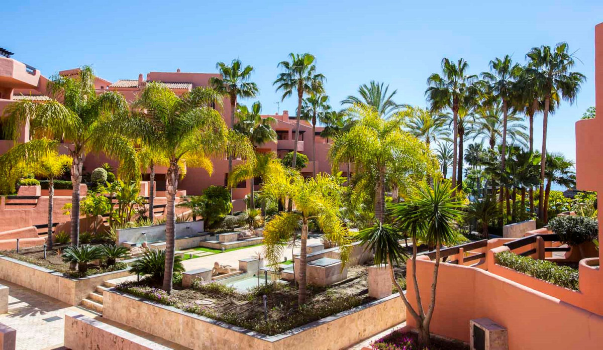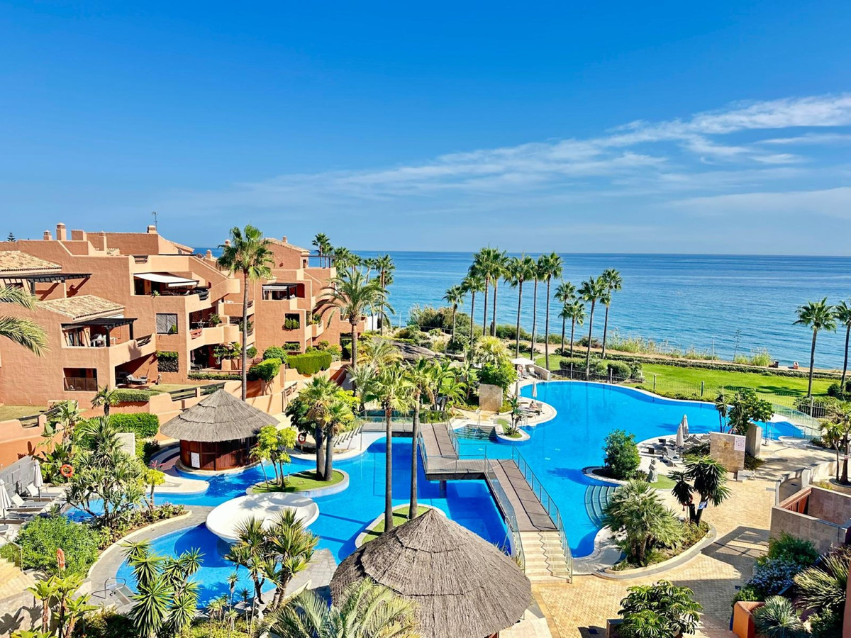 Presenting a sophisticated penthouse situated in the exclusive Mar Azul development, East of Estepona town. This 1 bedroom, 1 bathroom property spans 80m² of meticulously maintained living space, complemented by an expansive 100m² private terrace with panoramic views to the sea and surroundings. Ideally positioned on the front line of the beach, the residence enjoys stunning panoramic, sea, garden, and pool views, offering a rare opportunity to embrace the quintessential Costa del Sol lifestyle.