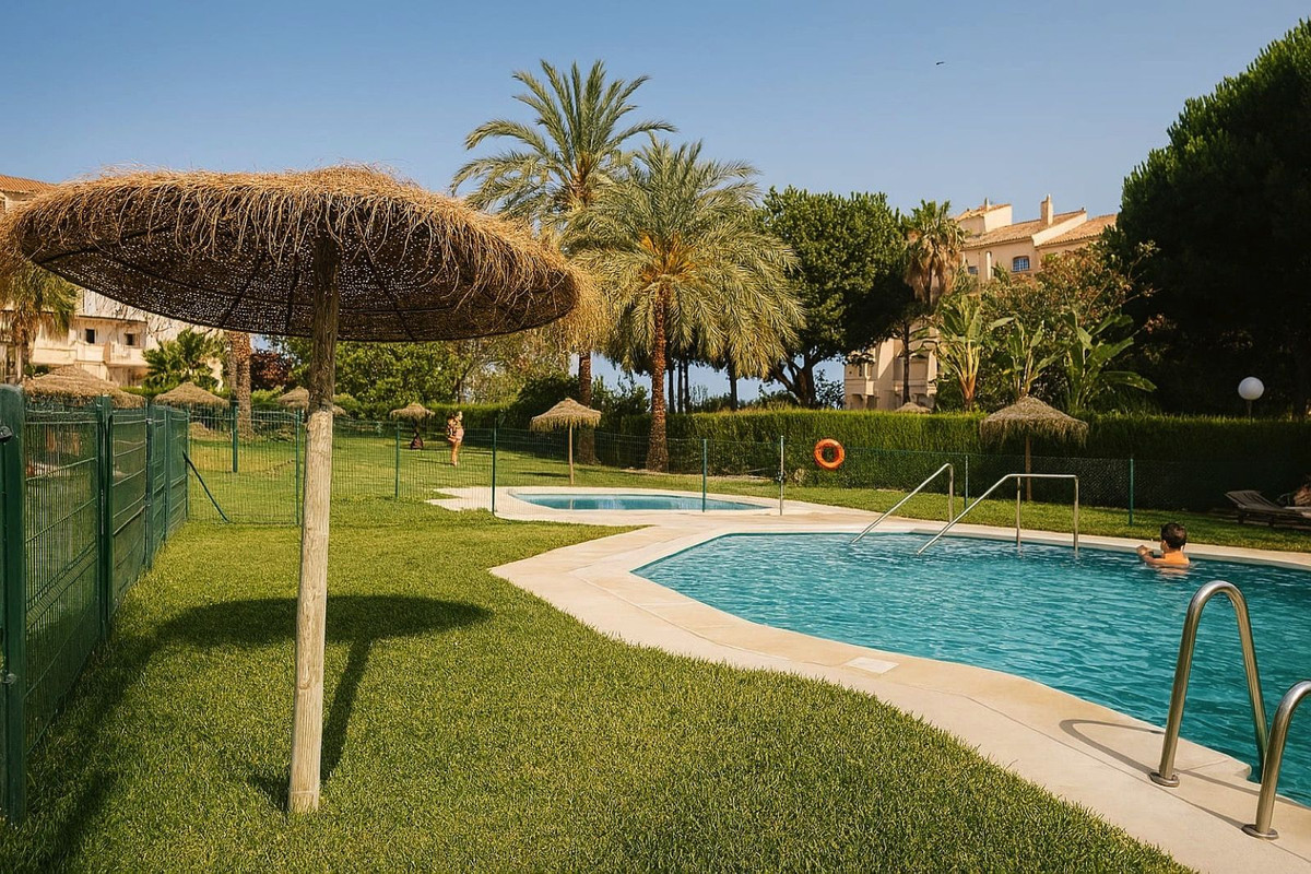 Step into luxury with this stunning 122 m² first-floor flat in the esteemed Sun Park urbanisation, nestled in the peaceful Selwo area of Estepona on the Costa del Sol. Completely reformed and fully furnished, this turnkey property is ready for immediate occupancy, offering a seamless blend of modern elegance and coastal convenience. Ideal as a primary residence or holiday retreat, it's situated in a well-maintained gated community known for its tranquil setting, lush communal gardens, and two sparkling swimming pools (one for adults and a children's pool). With excellent access via the A7 motorway, you're just moments from Estepona's vibrant town centre, pristine beaches (a short drive or walk away), and attractions like Selwo Aventura wildlife park.