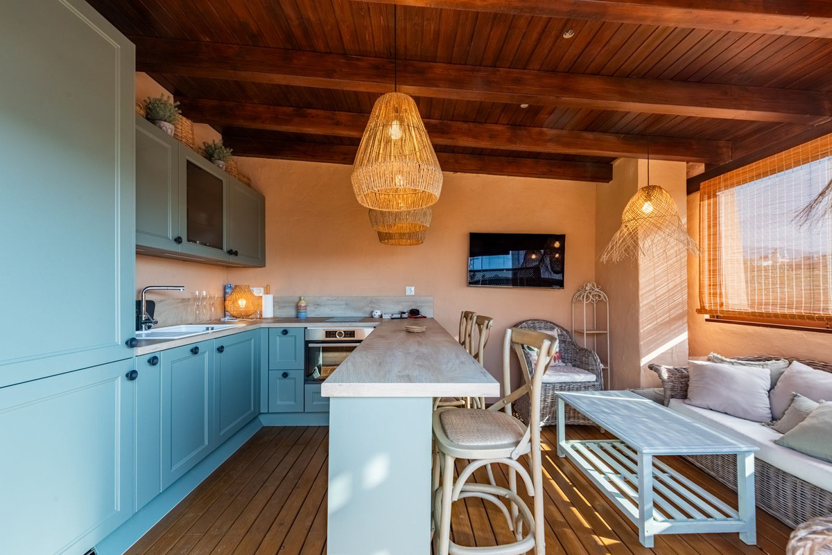 The top floor boasts an enclosed terrace with a fully equipped summer kitchen and lounge area. This space can be opened up during the warmer months and includes a plunge pool—perfect for entertaining or relaxing in privacy.