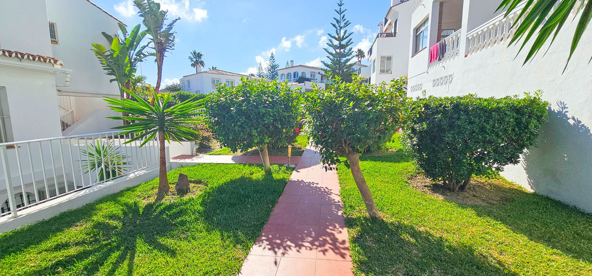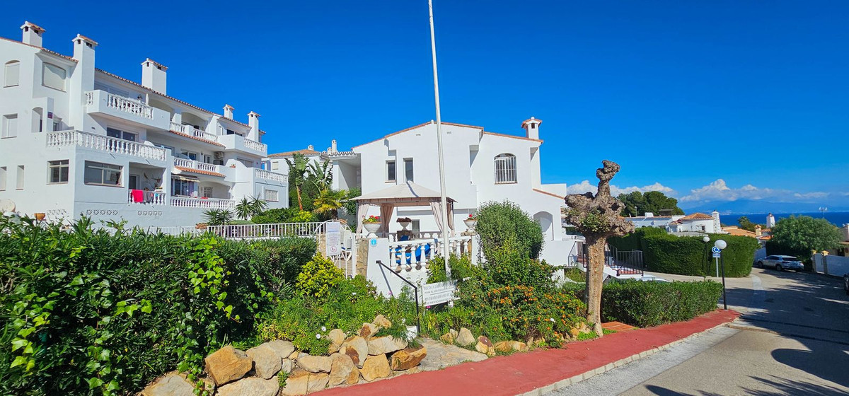 Set within a secure gated community, residents enjoy access to beautifully landscaped gardens filled with colorful plants, flowers, and palm trees, as well as a large communal pool area with sun loungers and parasols — perfect for unwinding on warm summer days. Communal off-street parking is also available.