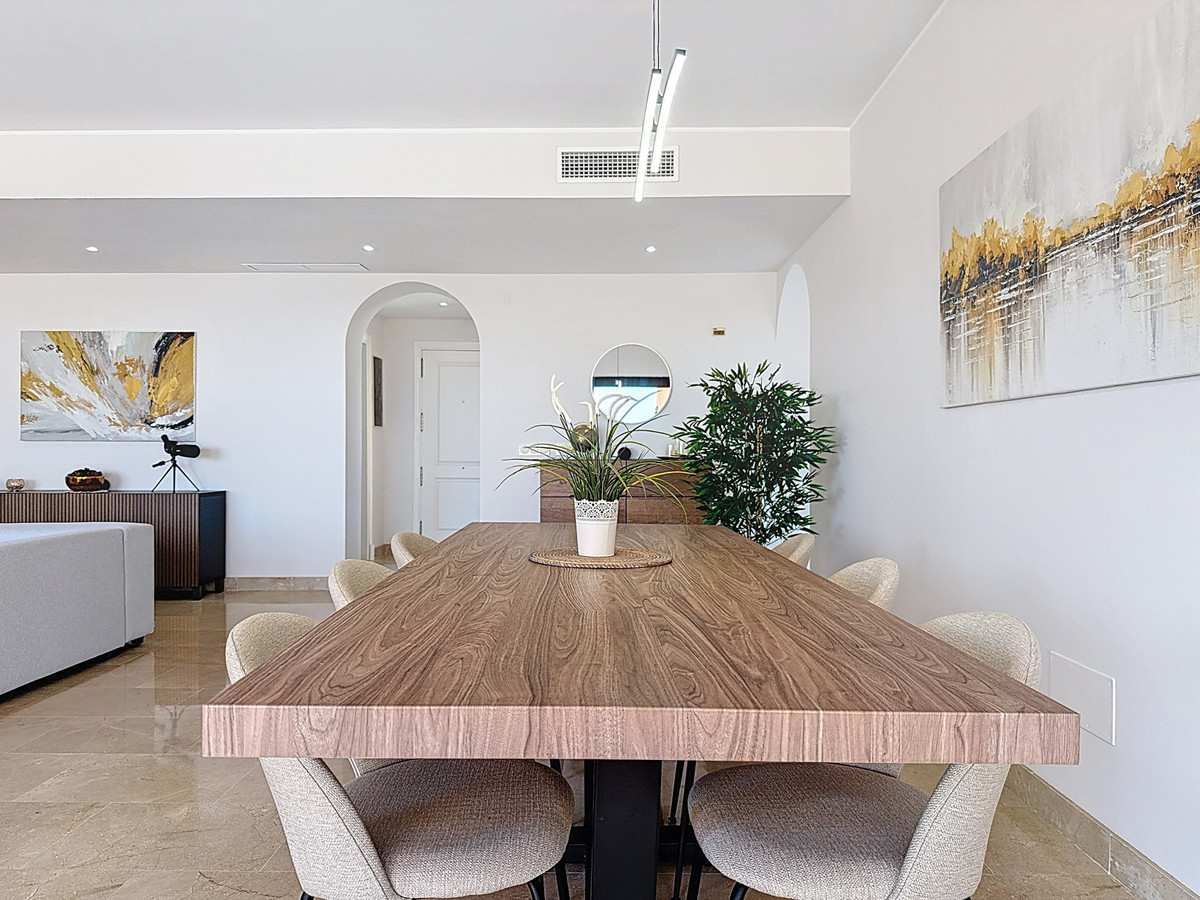 Bathed in light thanks to its elevated position, this apartment boasts 64 m² of terraces offering spectacular panoramic views of the Mediterranean Sea and the lush La Duquesa golf course.