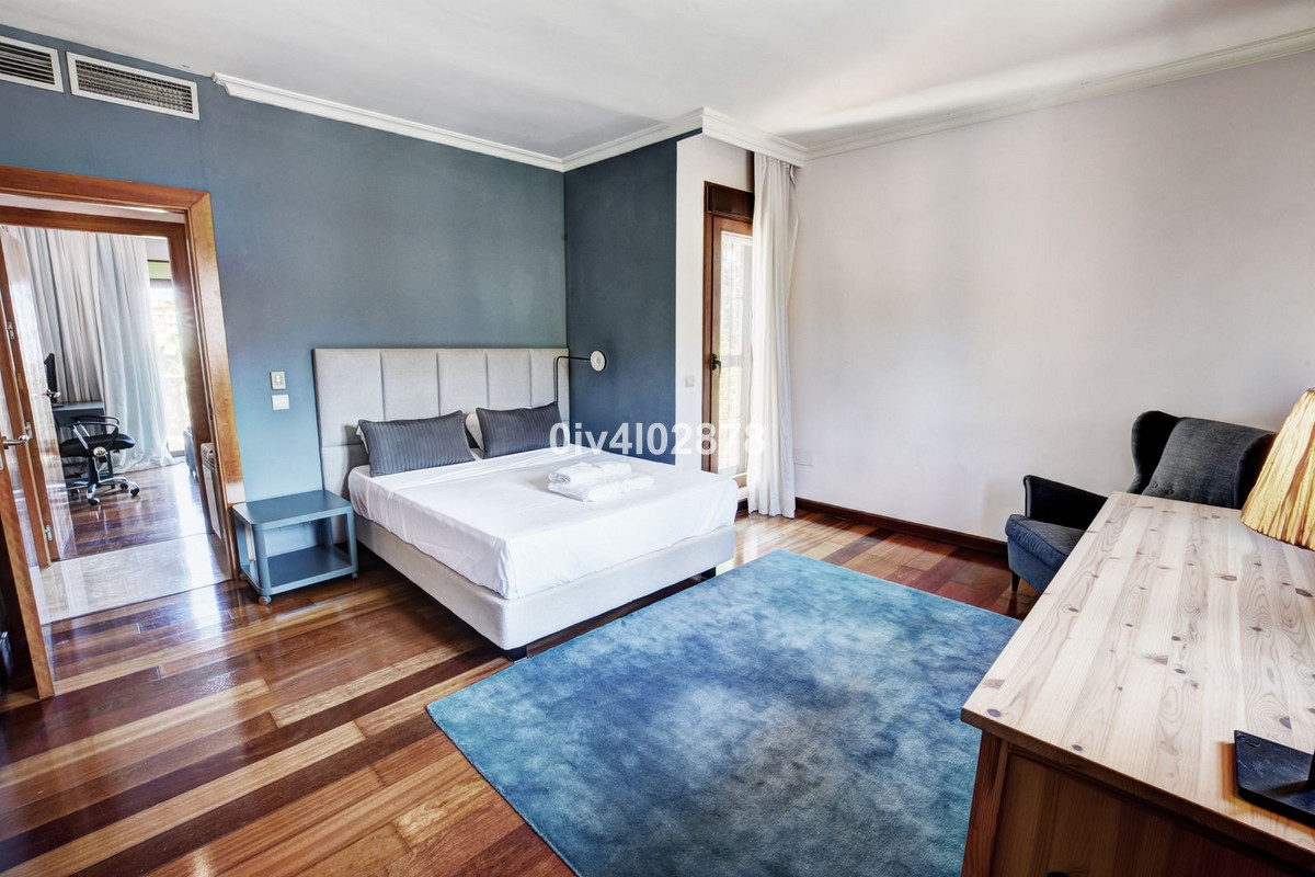 Upper Level: The staircase from the main level leads to a hallway connecting to the master suite and three additional guest bedrooms, plus a guest bathroom. All bedrooms have access to terraces, and the two south-facing rooms, including the master bedroom, share a large terrace with wonderful **sea views**. The master suite is exceptionally spacious, featuring a sitting area, a walk-in closet with extensive storage, and an ensuite bathroom with both a bathtub and a shower.