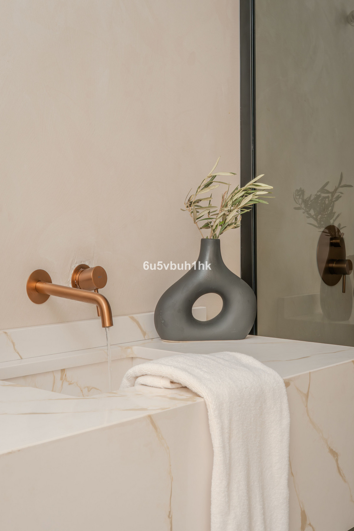 Inside, you’ll find elegant herringbone-look wooden flooring throughout, adding warmth and texture. The open-plan living and kitchen area features large corner windows that flood the space with natural light and offer vibrant views of the surrounding old town streets. The bathrooms are finished in sleek microcement for a clean, modern aesthetic.
