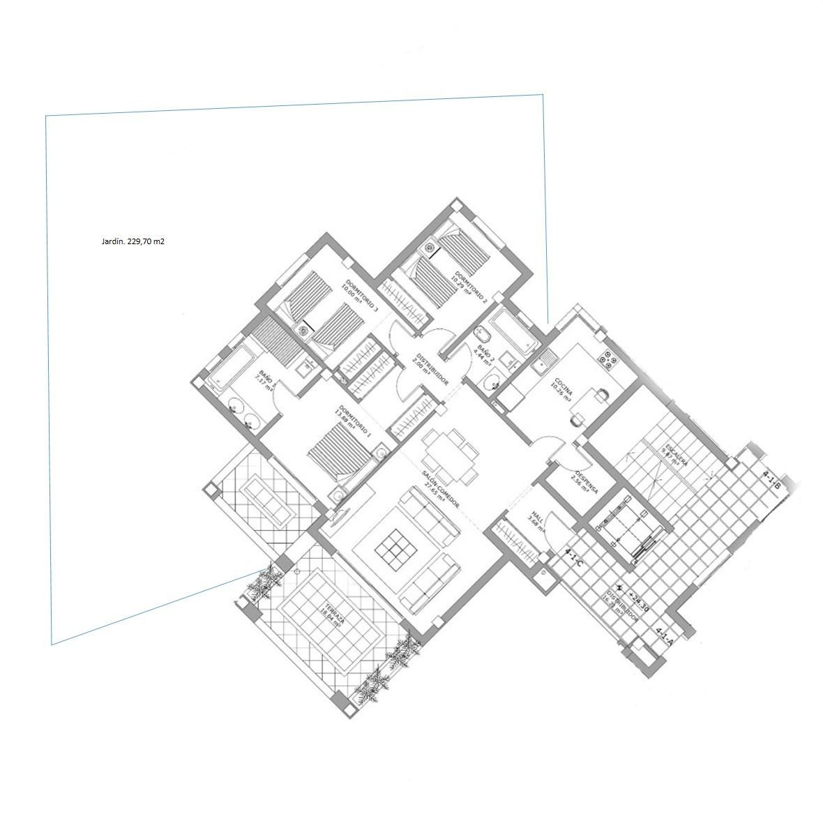 Enjoy the Andalusian sun on two terraces totaling 23 m² and a private 229 m² garden, lined with wood-effect ceramic tiles—your perfect spot for relaxation, gatherings, or outdoor moments.
