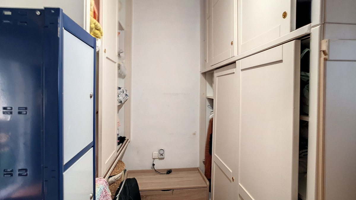 A completely independent apartment featuring a bright air-conditioned living room, a fully fitted kitchen, two bedrooms, a bathroom (with shower, toilet, and sink), and a dressing/storage room.