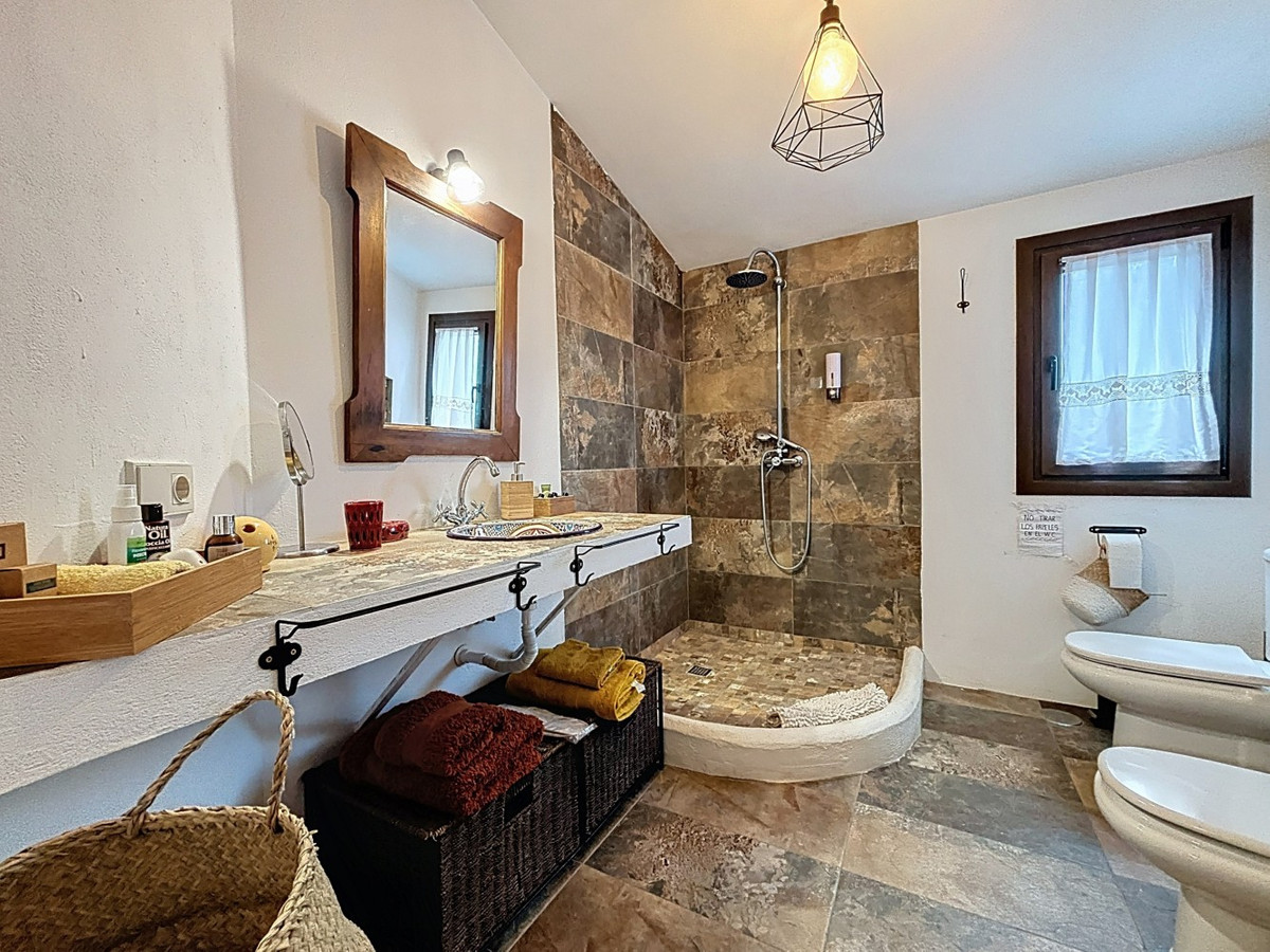 Discover the charm of countryside living with this spacious country house in the hills of Comares. This unique property is one house with two independent living spaces, offering flexibility for families, guests, or rental opportunities. The main living area on the ground floor features five bedrooms, two bathrooms, a kitchen, and a spacious living/dining room. Large windows allow natural light to fill the rooms, creating a warm and inviting atmosphere. Upstairs, the loft apartment includes its own kitchen, living/dining area, bathroom, and one bedroomperfect for guests or use as a rental unit. The ground floor also has two separate entrances, making it possible to divide the space into two apartments: one with two bedrooms, and the other with three. An ideal option for multi-family use or income potential. Outside, youll find a private pool, barbecue area, covered terrace, and plenty of space to relax and enjoy the peaceful mountain views. Additional features include a storage room, laundry room, air conditioning, and a chimney for year-round comfort. Whether you're looking for a family home, a tranquil holiday retreat, or an investment in rural Andalusia, this property offers endless potential in a stunning setting. Contact us today to arrange your viewing and experience the beauty of Comares. We are pleased to be able to present this dream property to you soon, either personally or via virtual viewing. Because this world is unique - just like our Axarquía. In Andalusia. On the Costa del Sol. Here, on the sunny side of life...