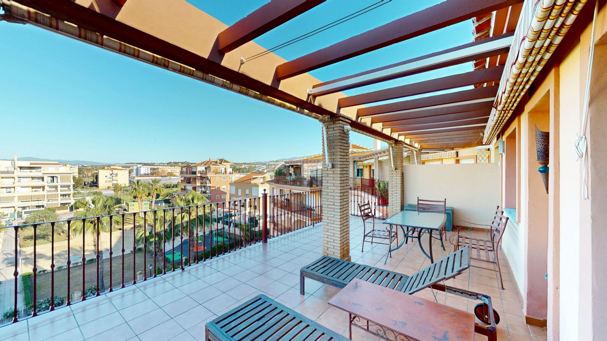 Welcome to this charming penthouse in the coastal village of Mezquitillaa perfect blend of comfort, functionality, and Mediterranean lifestyle. This well-designed apartment stands out with two private terraces, both offering lovely sea views and plenty of space to relax, dine, or entertain outdoors. The bright and airy living room flows seamlessly into the kitchen and opens directly onto one of the terraces, creating a wonderful indoor-outdoor feel. One of the two bedrooms also has direct access to the terrace, bringing in plenty of natural light and sea breezes. Both bedrooms are equipped with built-in wardrobes, and the entire apartment benefits from air conditioning for year-round comfort. The kitchen is compact yet stylish, featuring sleek white cabinetry, black countertops, and stainless steel appliances. The open-plan layout and thoughtfully chosen décorwith warm tones and pops of colorcreate a welcoming and contemporary atmosphere. The bathroom is modern and well-appointed, offering a combination bathtub and shower, a vessel sink, and quality fixtures that make the space both functional and pleasant. A private parking space and a separate storage room offer added convenience, and the well-kept community includes a shared poolideal for a refreshing dip on warm days. Located just a short stroll from the beach, local restaurants, shops, and other amenities, this penthouse is ideal for those looking for a full-time residence, a relaxing holiday home, or a solid investment on the sunny coast. We are pleased to be able to present this dream property to you soon, either personally or via virtual viewing. Because this world is unique - just like our Axarquía. In Andalusia. On the Costa del Sol. Here, on the sunny side of life...