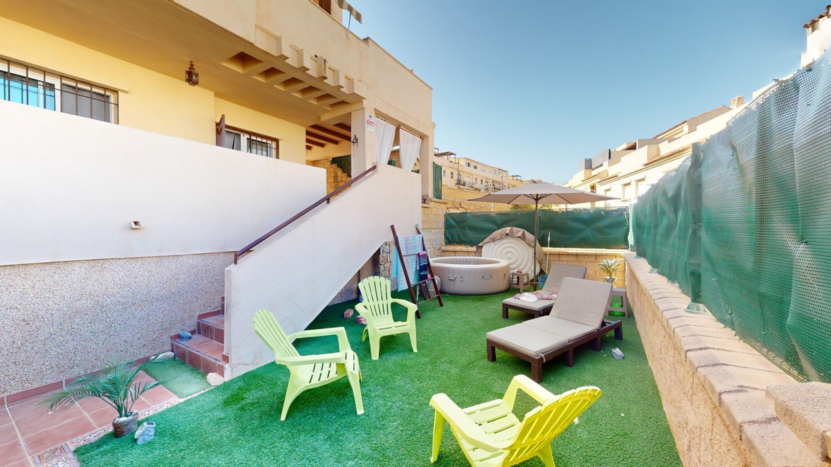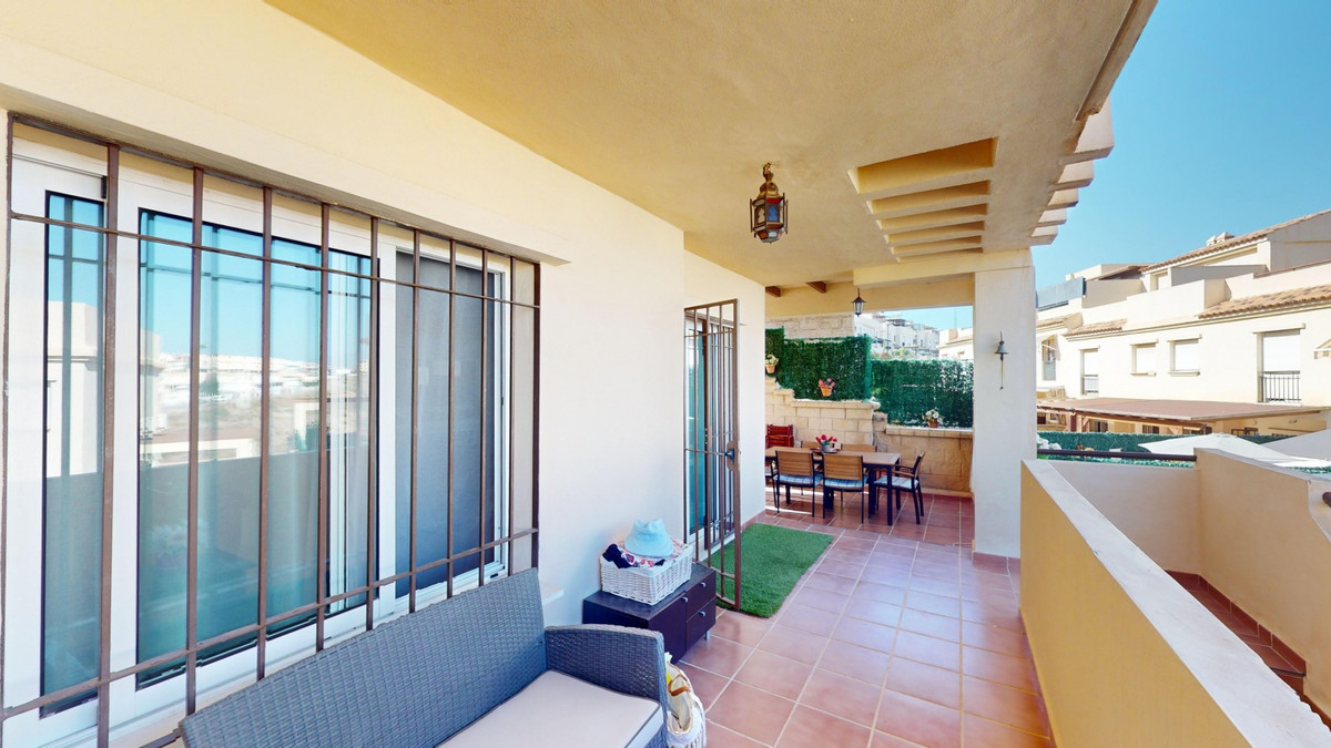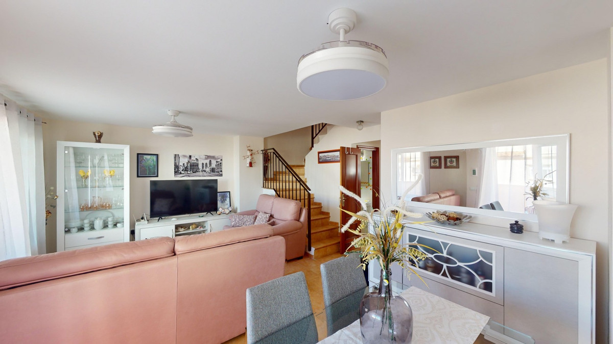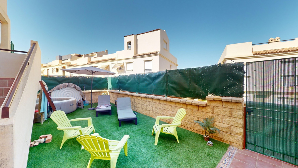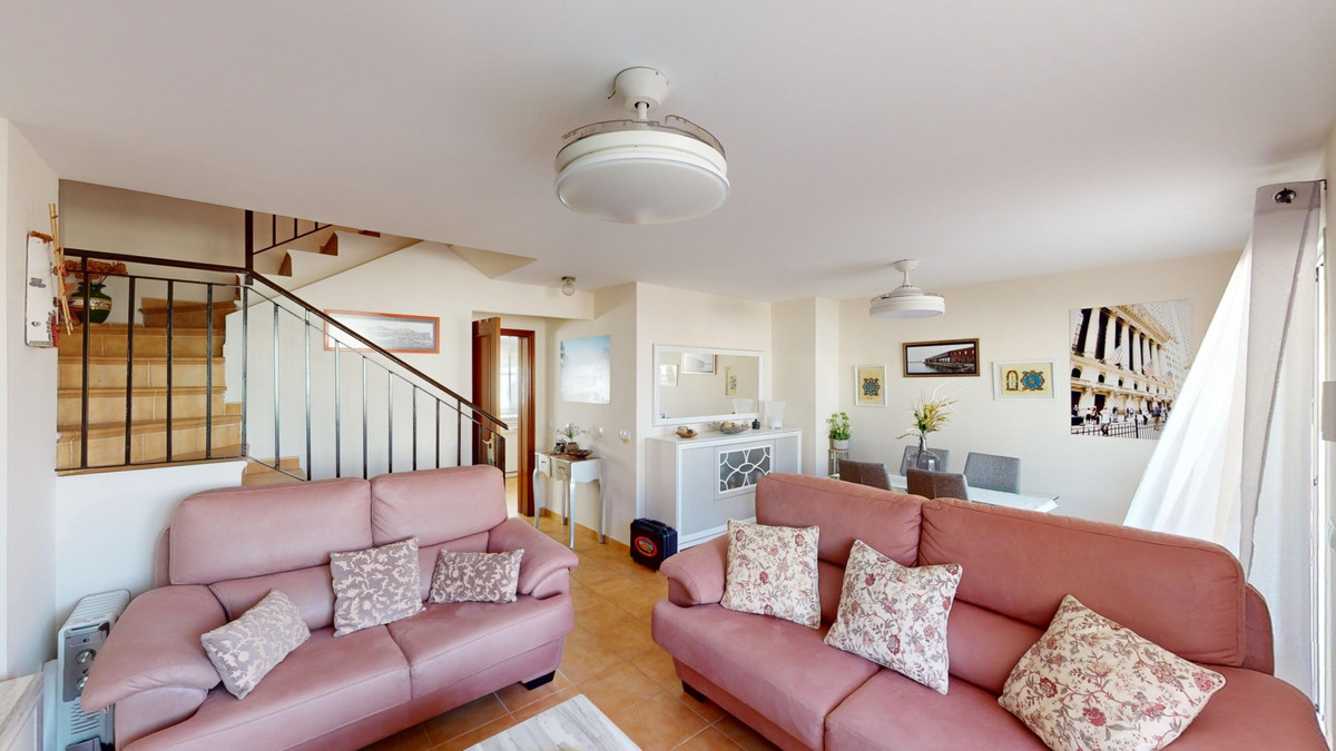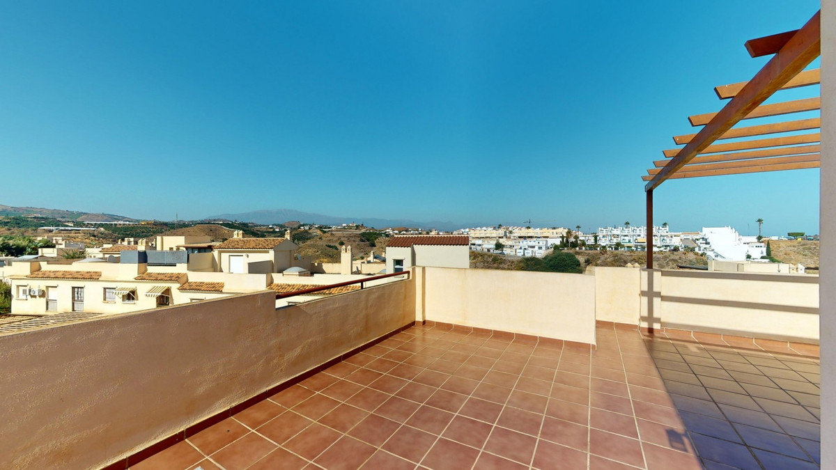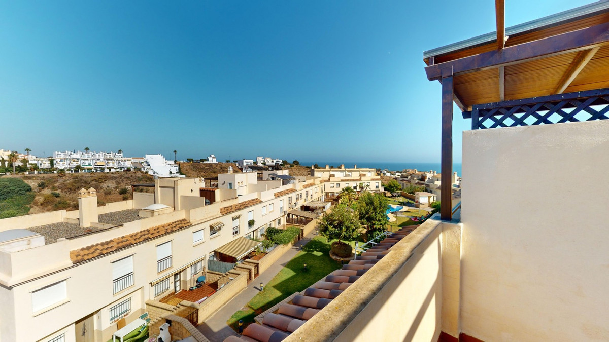 This charming corner townhouse in the popular urbanization of Valle Niza offers a cozy home with a touch of Mediterranean flair. Spread over two floors and featuring a spacious rooftop terrace with lovely sea views, this property provides everything needed for comfortable living under the Andalusian sun. The ground floor includes a practical, well-equipped kitchen and a bright living-dining room with direct access to the terrace, perfect for outdoor meals or relaxing moments. A guest WC completes the layout on this level. On the first floor, you'll find the master bedroom with an en-suite bathroom and access to a private terrace, ideal for enjoying the fresh morning air. There are three additional bedrooms, offering space for family or guests, one of which also has access to the terrace. A second bathroom is also available. The home features air conditioning and built-in wardrobes for comfort and ample storage. The rooftop terrace offers various possibilities for use, whether its sunbathing or enjoying a relaxing aperitif at sunset with a view of the sea. The house is surrounded by a spacious terrace on three sides, ensuring there's always a shaded spot to retreat to. A small garden below the terrace provides direct access to the communal pool, which is just a short walk away. The urbanization also offers five additional pools, sports courts for tennis and basketball, as well as playgrounds for children. This property is perfect for families or as a holiday home for those seeking a relaxed lifestyle in a friendly Mediterranean community. We are pleased to be able to present this dream property to you soon, either personally or via virtual viewing. Because this world is unique - just like our Axarquía. In Andalusia. On the Costa del Sol. Here, on the sunny side of life...