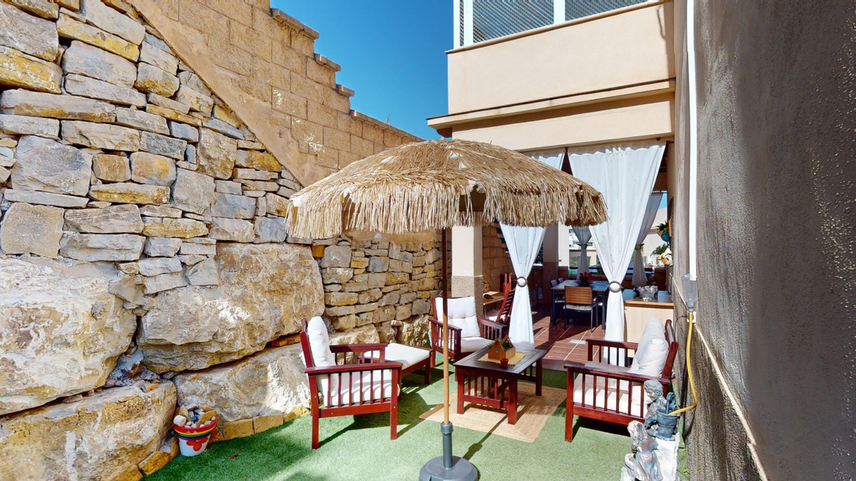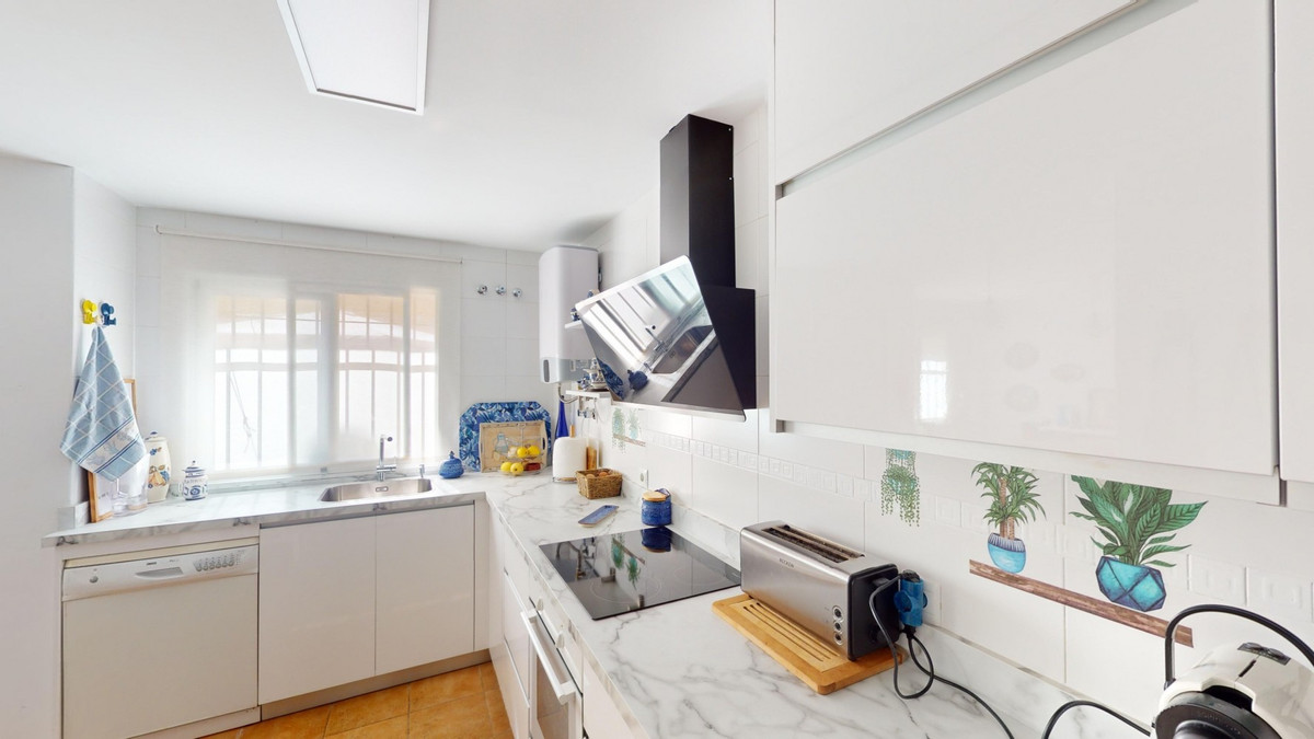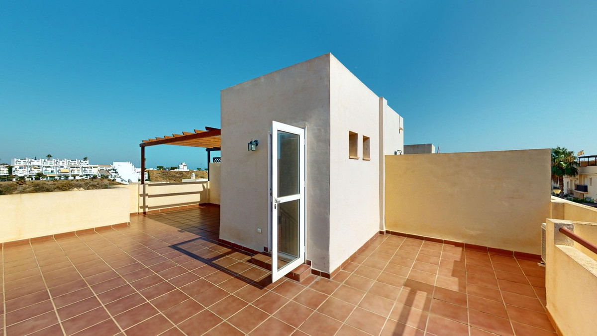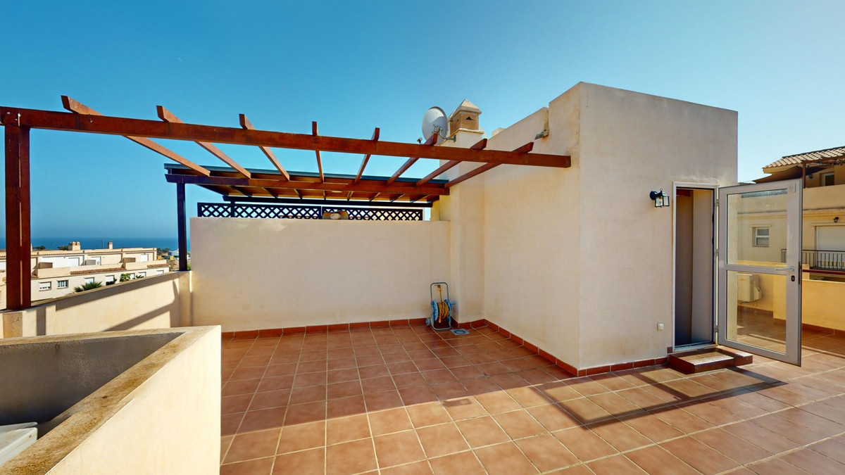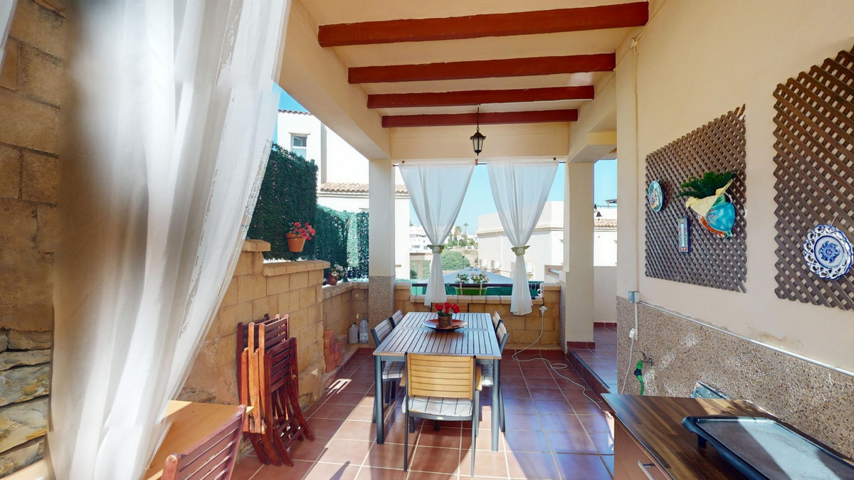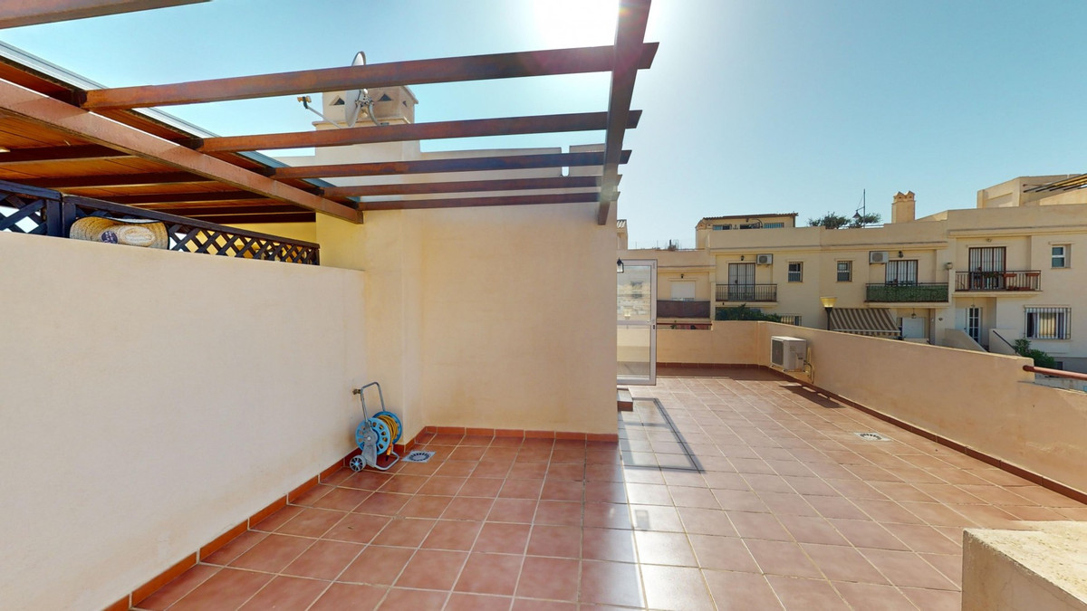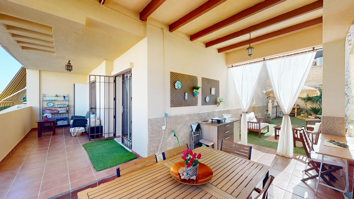 This charming corner townhouse in the popular urbanization of Valle Niza offers a cozy home with a touch of Mediterranean flair. Spread over two floors and featuring a spacious rooftop terrace with lovely sea views, this property provides everything needed for comfortable living under the Andalusian sun. The ground floor includes a practical, well-equipped kitchen and a bright living-dining room with direct access to the terrace, perfect for outdoor meals or relaxing moments. A guest WC completes the layout on this level. On the first floor, you'll find the master bedroom with an en-suite bathroom and access to a private terrace, ideal for enjoying the fresh morning air. There are three additional bedrooms, offering space for family or guests, one of which also has access to the terrace. A second bathroom is also available. The home features air conditioning and built-in wardrobes for comfort and ample storage. The rooftop terrace offers various possibilities for use, whether its sunbathing or enjoying a relaxing aperitif at sunset with a view of the sea. The house is surrounded by a spacious terrace on three sides, ensuring there's always a shaded spot to retreat to. A small garden below the terrace provides direct access to the communal pool, which is just a short walk away. The urbanization also offers five additional pools, sports courts for tennis and basketball, as well as playgrounds for children. This property is perfect for families or as a holiday home for those seeking a relaxed lifestyle in a friendly Mediterranean community. We are pleased to be able to present this dream property to you soon, either personally or via virtual viewing. Because this world is unique - just like our Axarquía. In Andalusia. On the Costa del Sol. Here, on the sunny side of life...