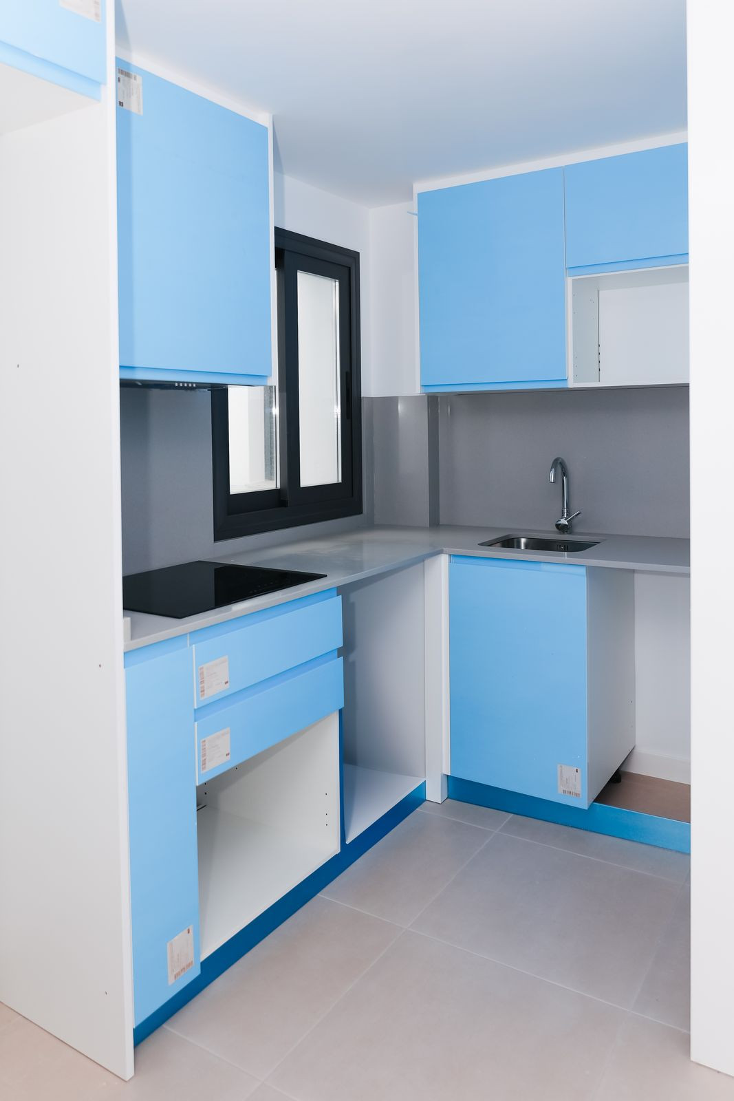 Furnished kitchen with ceramic hob, sink, and extractor hood