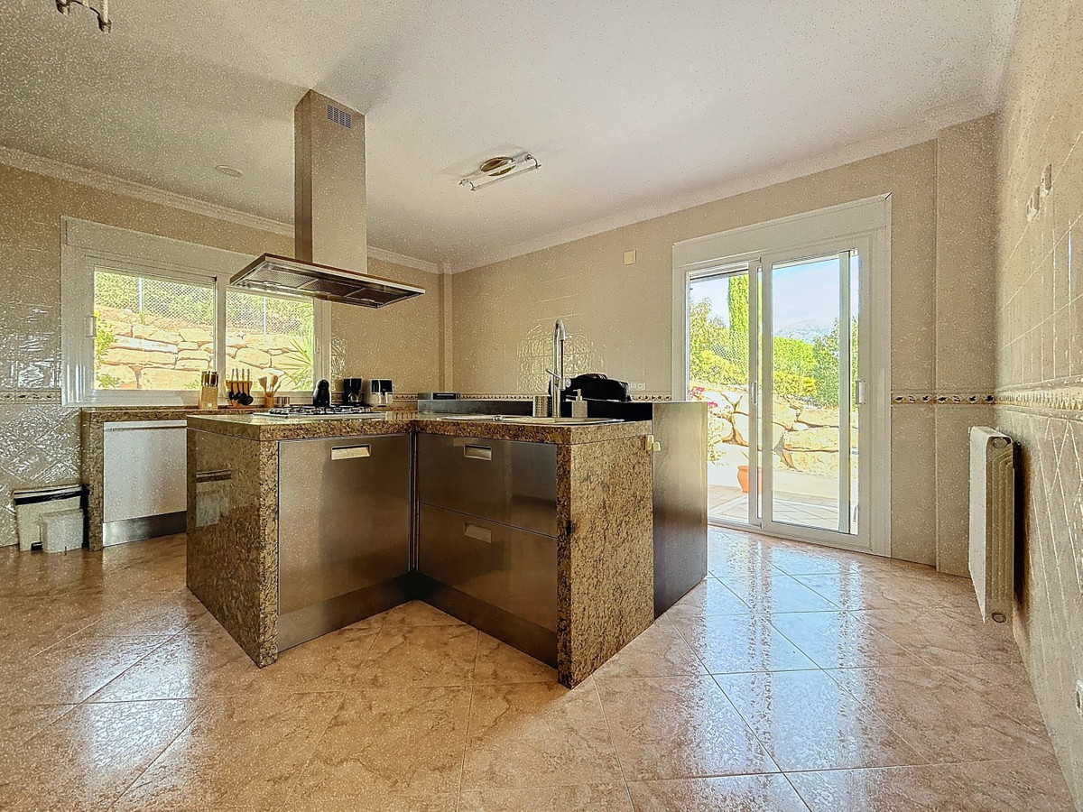 For sale: an impressive villa in Periana with 580 square meters of built space on a 1,800 square meter plot, ideal for those seeking a spacious home with a range of amenities. The villa is spread over 2 floors and features 4 large bedrooms, each with its own en-suite bathroom, ensuring maximum privacy and comfort. All bedrooms are equipped with built-in wardrobes, providing ample storage space. The large living-dining room is perfect for social gatherings, and the modern, fully equipped kitchen combines both style and functionality. The house is also fitted with a built-in sound system, providing luxury and comfort throughout all rooms. One of the villa's key highlights is the large terrace, offering spectacular views of the lake and surrounding mountains, creating the perfect outdoor relaxation space. The property also includes a large pool, ideal for enjoying the warm weather, and a garage with space for several vehicles. Another major advantage of this villa is that it comes with a B&B (Bed and Breakfast) license and a vacation rental license, making it an excellent investment opportunity. The ground floor can also be converted into a separate living unit, offering additional accommodation options. The villa boasts an outdoor kitchen, perfect for preparing meals and hosting barbecues while enjoying the peaceful and private surroundings. This villa is a unique opportunity to acquire a luxury property in Periana, fully equipped with all the necessary amenities and licenses for either private use or as a holiday rental. Dont miss the chance to visit! We are pleased to be able to present this dream property to you soon, either personally or via virtual viewing. Because this world is unique - just like our Axarquía. In Andalusia. On the Costa del Sol. Here, on the sunny side of life...