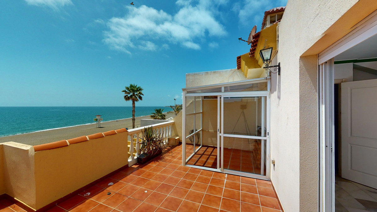 This is a magnificent front line beach townhouse with spectacular views to the beach and the promenade. The property has a living room, a kitchen, 4 bedrooms, 2 bathrooms, a toilet, 3 terraces, a balcony, a garage for 2 cars and a storage room. The house is divided into 3 floors and the basement where the garage is located. The entrance is on the ground floor where we find a hallway that connects with the kitchen, a toilet and the living room that has a large outdoor terrace, from the same terrace we have a door that gives access to the promenade and the beach. The first floor has 3 bedrooms and 2 bathrooms, from 2 bedrooms you have breath-taking sea views, the master bedroom has a dressing room, a terrace and an en-suite bathroom, the other bathroom is for the 2 bedrooms. On the third floor we have a room with 2 large terraces one facing the mountains and the other facing the sea and have incredible panoramic views. In the basement we find a large garage that can store 2 cars and there is plenty of space to store things, just in front of the garage there is a large storage room. The property is perfect if you like to live in front of the sea. The sound and the peace that the sea transmits is incomparable. We are pleased to be able to present this dream property to you soon, either personally or via virtual viewing. Because this world, it is unique - just like our Axarquía. In Andalusia. On the Costa del Sol. Here, on the sunny side of life...