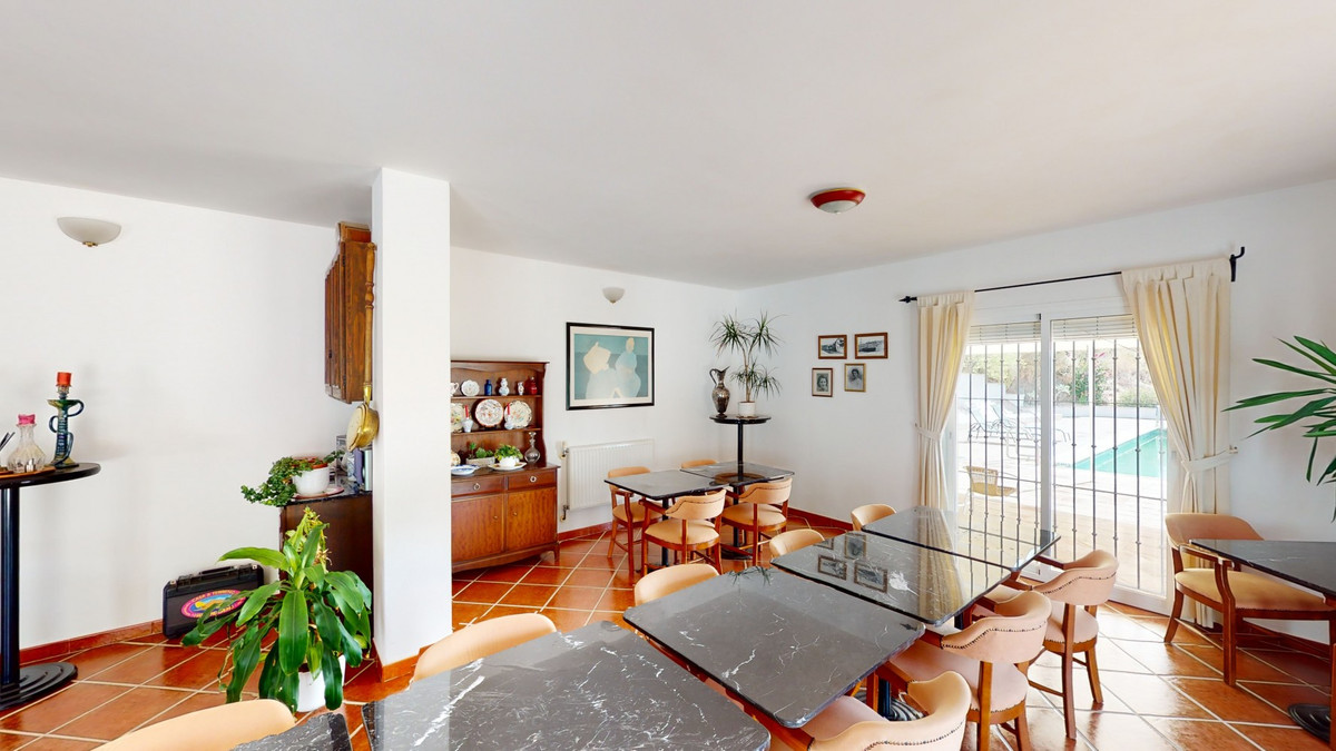 We present you this wonderful hotel/B&B close to the charming town of Macharaviaya. The property has a plot of 18,313 m2. The hotel itself has 500 m2, perfect to realize your dream of owning a B&B or a hotel. When you enter the building, you will find yourself in a spacious area that is used as a reception, bar and dining area. There are also seating areas, as well as two restrooms. Connected to this area is the fully equipped kitchen with professional equipment. There are also two rooms on the first floor. One is designed for people with limited mobility. The door frame is wide enough for a wheelchair to fit through, also there are handles next to the toilet and bathtub. The second room, could also be used as another bedroom, or as an office, storage room, etc. Next to the two rooms there is another toilet that is intended for the employees. An external staircase leads to the large, fantastic bedrooms. Five in number. All have en-suite bathrooms, as well as built-in wardrobes and some have their own terraces. Also, in these rooms we find the wide door frames. You would need a ramp or a seat elevator to get to this floor with a wheelchair. One could completely adapt this property to people with reduced mobility. Outside there is a pool of 12 x 6 meters. Ideal to cool off on those hot summer days. In addition, there is a garden area, space to park several cars and a small chapel, which is currently used for storage. Here you have many possibilities to remodel it. The hotel has a fantastic panoramic view of the sea and the surrounding countryside. Don't miss the opportunity to get to know this unique property and get inspired how you could transform the hotel according to your taste. We are pleased to be able to present this dream property to you soon, either personally or via virtual viewing. Because this world, it is unique - just like our Axarquía. In Andalusia. On the Costa del Sol. Here, on the sunny side of life...