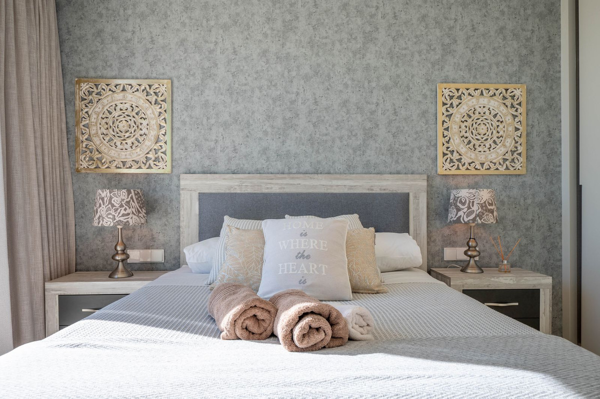 The complex captivates with magnificent pools and beautiful gardens filled with palms, Bougainvillea, and jasmine. International schools are within a 5-minute drive, the beach is a pleasant 10-minute walk, and five golf courses are nearby. The gated community with 24/7 security ensures peace of mind.
