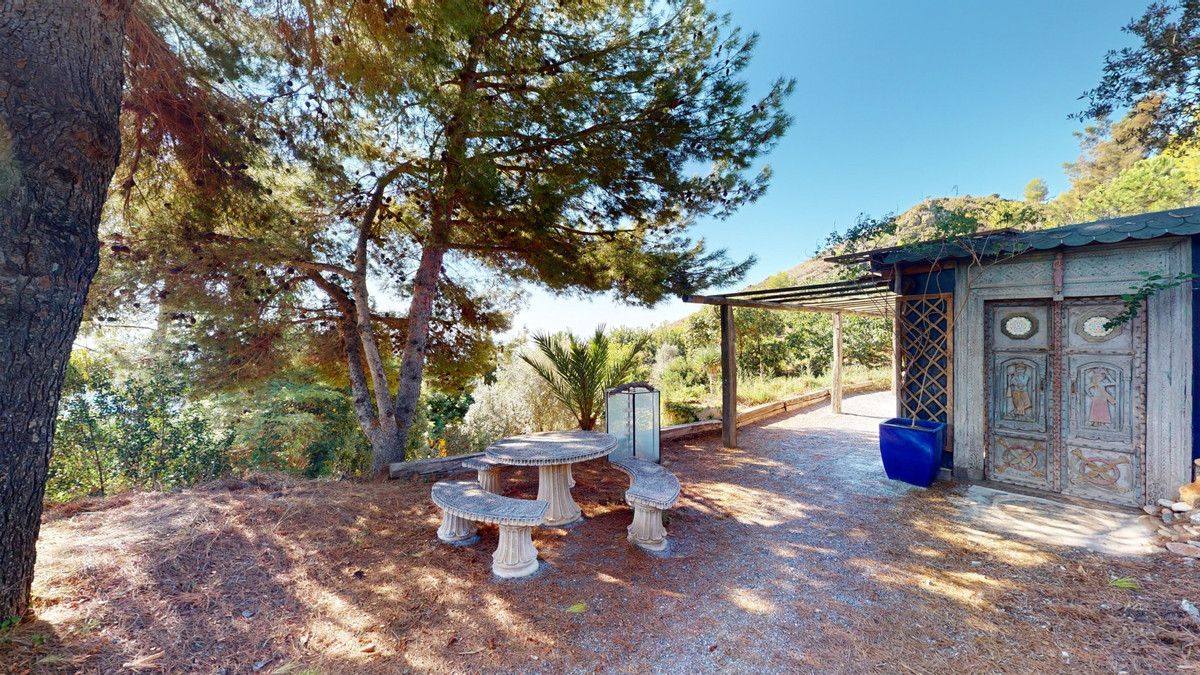Between the Sierra de Almijara and the Mediterranean Sea lies this spectacular ecological finca of 4 hectares, bordering the natural park Maro-Cerro Gorde, which provides a haven of tranquillity and enormous privacy. The property has a plot of 35.955 square metres and offers a total of 270 square metres of construction. The property is completely surrounded by nature at its best, the property offers breathtaking views of the sea and the mountains, and all the buildings are completely hidden from each other thanks to its variety of trees, giving the feeling of living in a forest full of peace. The main house has a spacious living room at the entrance with a fabulous fireplace to heat the whole house, a fully equipped kitchen with a pantry, a dining room, a bedroom, a bathroom with a rain shower, a guest toilet, a reading and chill-out room, a sauna, a gym and an office that can be transformed into a large bedroom if needed. Leaving through the office we find a room built in a kind of igloo made of natural bricks. It also has a terrace perfect for relaxing and enjoying the surroundings. The secondary house offers a cosy space with a living-dining room and fireplace, a fully equipped kitchen, a bedroom, a bathroom and a private terrace which is hidden from the other property to provide a greater privilege of privacy. The guest residence has a bedroom, a kitchen and a bathroom. The finca has an equipped workshop of 25m2. It also offers a swimming pool area, a perfect area to take a peaceful break, thanks to the nature and the spaciousness of the pool it gives us the feeling of swimming in a lake in the middle of the forest. The property is made up of five buildings strategically distributed and set apart to guarantee maximum privacy and peacefulness for its residents. We also have a platform of approximately 300m2 with 360o views of the sea and the mountains. The estate has an extensive variety of fruit trees and flowers from all over the world, with 174 different varieties of trees. The property has water from a natural spring, a well and water from the irrigation community, it has 2 covered concrete water deposits of 125,000 litres and another water deposit of the spring water in the main house of 3,000 litres. The finca is reached by a 4 km asphalted road from the N-340 road. - It is 6 km from the beaches of the natural park. - 10 km from the centre of Nerja - 80 km from Malaga airport - 90km from the centre of Granada With all services and enjoying a real and varied sovereignty in what is considered to be the best climate in Europe, this place is truly a place to enjoy an excellent quality of life. We are pleased to be able to present this dream property to you soon, either personally or via virtual viewing. Because this world is unique - just like our Axarquía. In Andalusia. On the Costa del Sol. Here, on the sunny side of life...