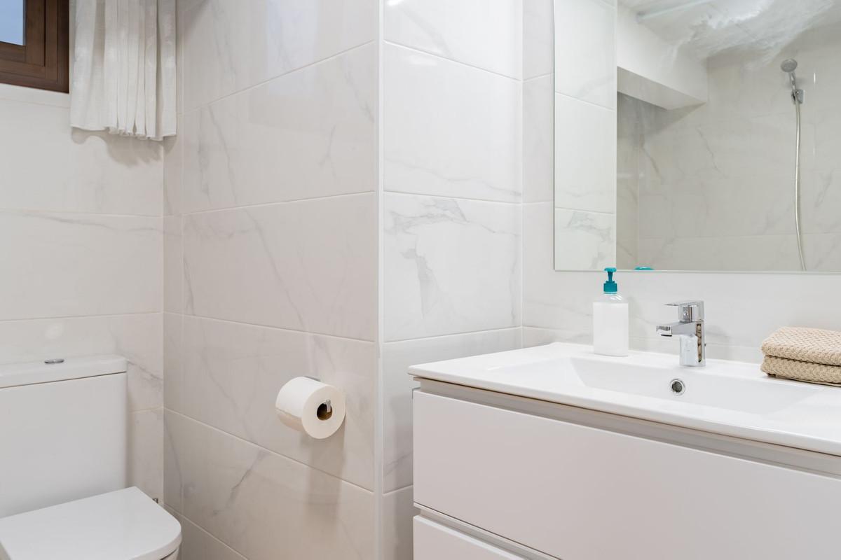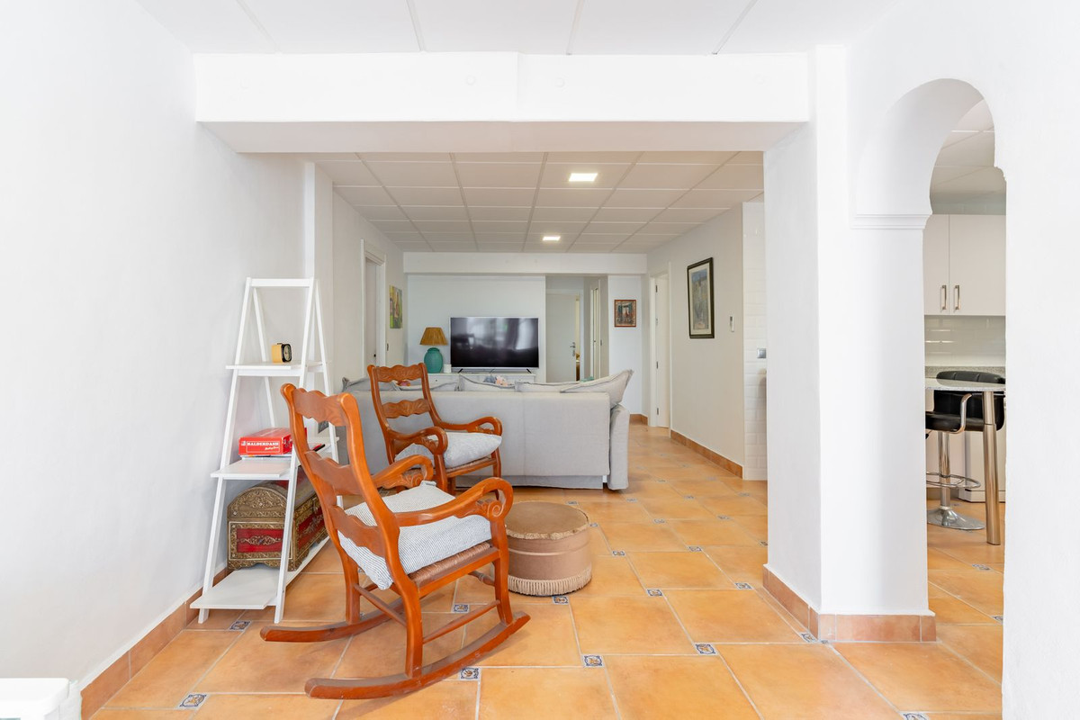 Inside, the main level features a spacious living and dining area filled with natural light, a fully fitted kitchen, and three bedrooms—two of which have en-suite bathrooms. From the living area, step into a stunning Andalusian-style courtyard, complete with a tranquil fountain—an idyllic spot to unwind.