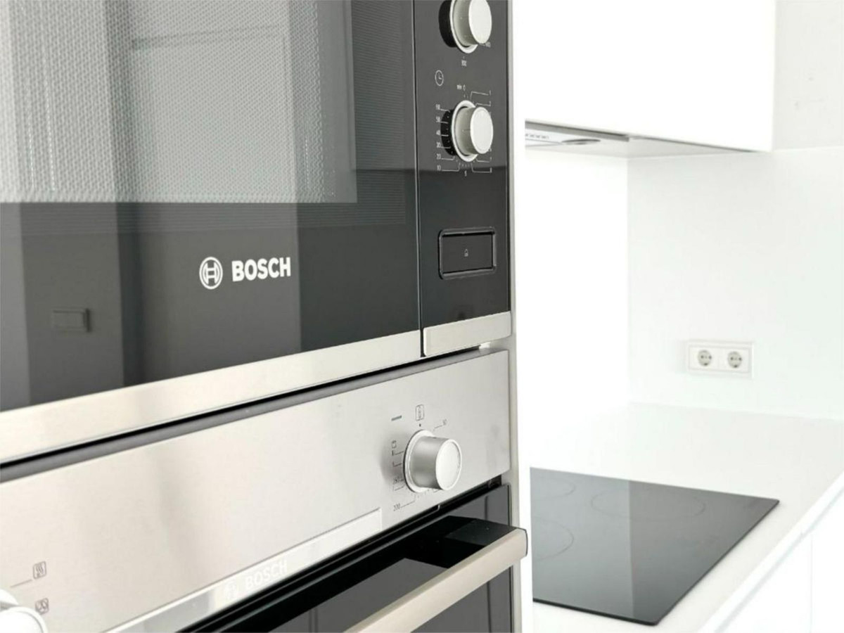 The first floor comprises three spacious bedrooms, each with views of the sea, the coast, or the surrounding green areas, and all equipped with built-in wardrobes. The master bedroom has an en-suite bathroom with a shower, while the two remaining bedrooms share a bathroom with a bathtub.