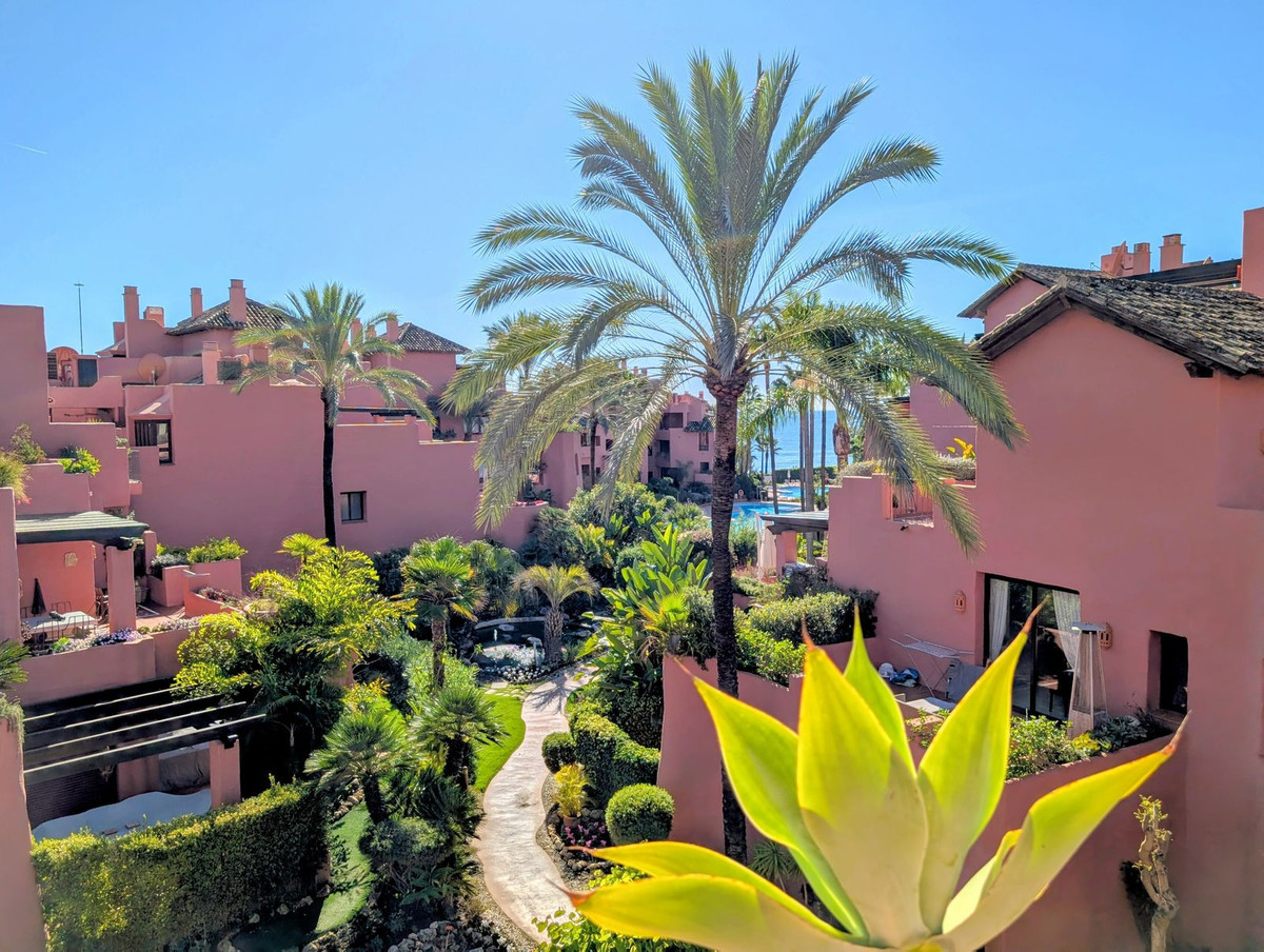 NEW on the market! Stunning Penthouse duplex in exclusive luxury beachfront complex on the New Golden Mile, East Estepona. The property benefits from prominent position within the urbanisation, with breathtaking views towards the Mediterranean sea, Sierra Bermeja mountains and amazing landscaped gardens with lakes, fountains, swimming pools and lush vegetation.