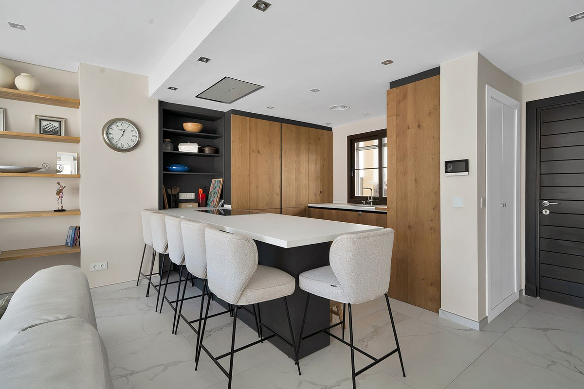 The spacious open-plan living area and modern kitchen benefit from glass curtain enclosures, creating a bright, extended living space filled with natural light. From both the lounge and the terrace, you can enjoy stunning open views.