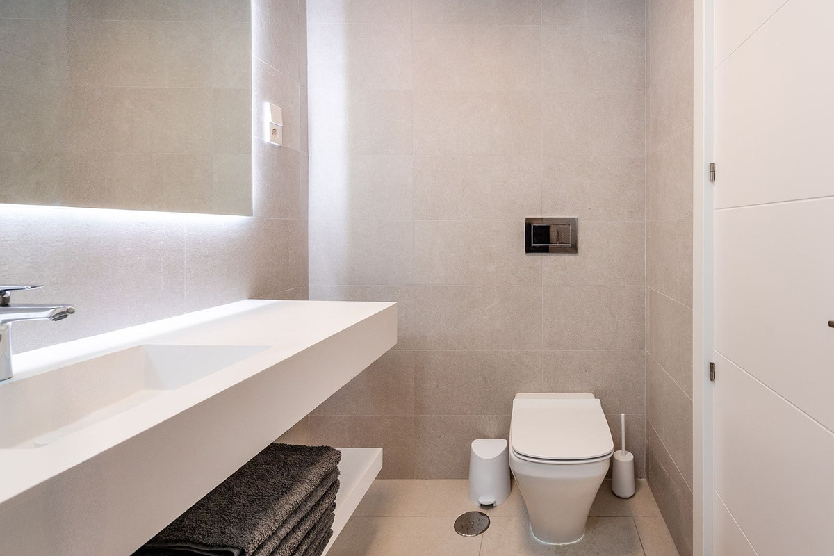 The master bedroom boasts an en-suite bathroom and direct access to the terrace with sea views. Two additional bedrooms and a second bathroom make this home perfect for families or as a high-end rental investment.