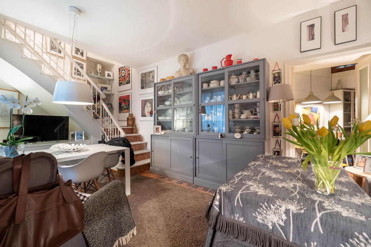 A delightfully well-presented townhouse in the town centre of Alhaurin El Grande, close to shops, bars, and restaurants. The property is distributed over three levels; the ground floor consists of a fully fitted kitchen and WC, an open lounge/diner leading upstairs to the first floor with access to a double bedroom and a large en suite bathroom benefiting from a cosy little patio. Following from the landing takes you up to the top floor, which comprises a small library with storage cabinets, an ensuite bedroom, and access to a private terrace from both the landing and bedroom. The features include air conditioning (lounge) and new bathrooms; the property would make both an ideal residential/holiday home with low maintenance and running costs.