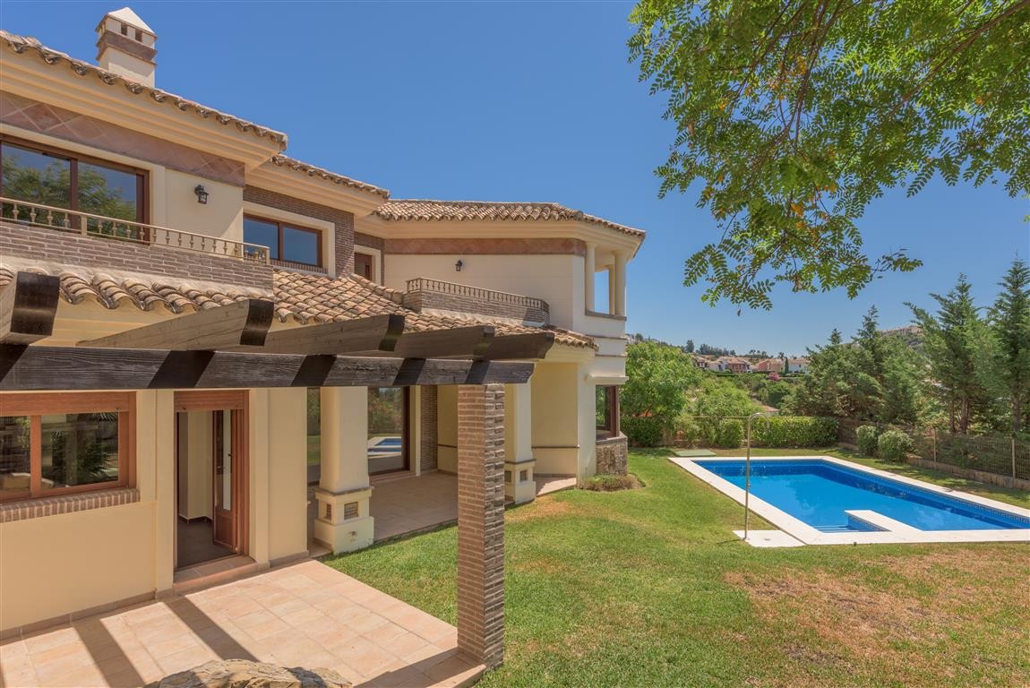 Villa for sale in , Benahavis with 5 bedrooms, 5 bathrooms, 5 en suite bathrooms, 1 toilet and with orientation south/east, with private swimming pool, private garage and private garden. Regarding property dimensions, it has 470 m² built, 1,000 m² plot, 414 m² interior and 56 m² terrace. Has the following facilities amenities near, air conditioning, central heating, fully fitted kitchen, utility room, fireplace, jacuzzi, satellite tv, basement, solar panels, guest room, storage room, gym, alarm, solarium, security entrance, double glazing, dining room, barbecue, security service 24h, guest toilet, private terrace, kitchen equipped, living room, study room, sea view, mountain view, golf view, automatic irrigation system, laundry room, covered terrace, electric blinds, fitted wardrobes, garden view, pool view, panoramic view, unfurnished, close to sea / beach, close to golf, uncovered terrace, games room, glass doors, balcony, excellent condition, close to shops, close to town and close to schools.