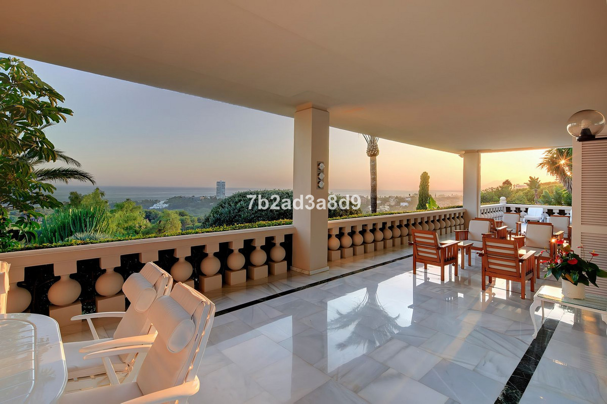 This extraordinary detached villa in Río Real, Marbella, offers a rare blend of classic Andalusian elegance and exceptional potential for modern transformation. Set atop a private hill, it enjoys uninterrupted views of the Mediterranean Sea, lush golf courses, and rolling green valleys—creating a serene yet captivating backdrop. With a vast plot of 5,775 m² and 2,600 m² of built space, the estate presents an outstanding lifestyle opportunity for discerning buyers seeking privacy, luxury, and architectural versatility.