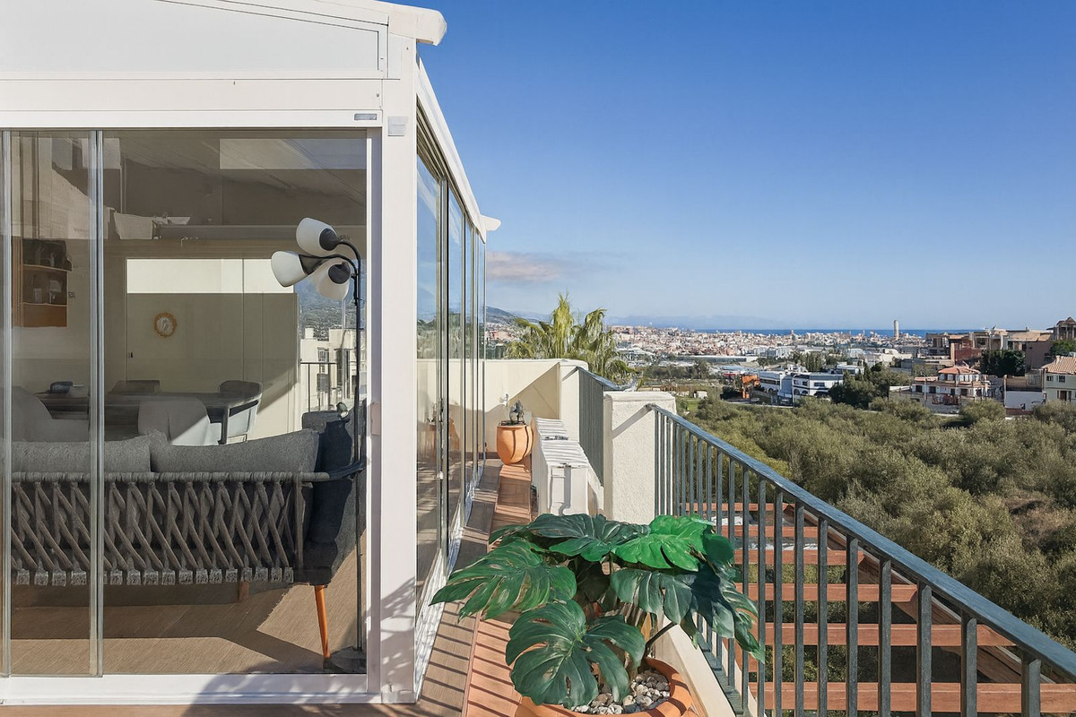 The highlight of this property is its upper floor. The current owners have transformed a part of the roof terrace into an enclosed glass pergola that can be opened with sliding doors, creating a second, very cozy living or lounge area with spectacular, year-round views.