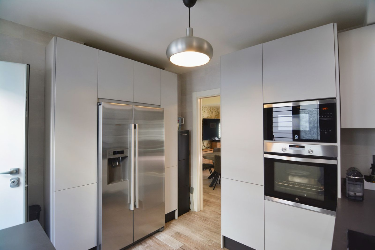 Fastigheten har 168 m² byggyta fördelat på två våningar på en tomt om 140 m². Bottenvåningen består av ett rymligt vardagsrum med matsal, ett separat kök, ett sovrum, ett badrum utrustat med badkar och hydromassagedusch, ett privat garage, ett förråd, en veranda terrass på 26 m² och en innergård på 13 m². På övre våningen finns fyra mycket ljusa sovrum, ett komplett badrum, en walk in garderob och en terrass på 14 m² med flera möjliga användningsområden.