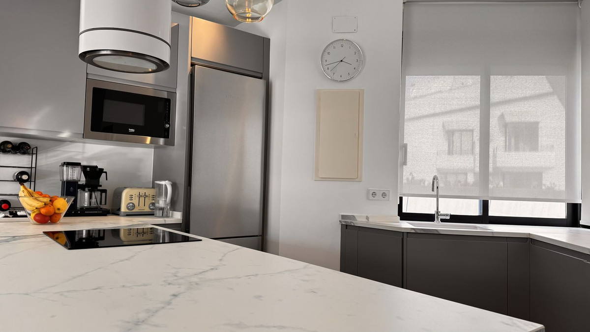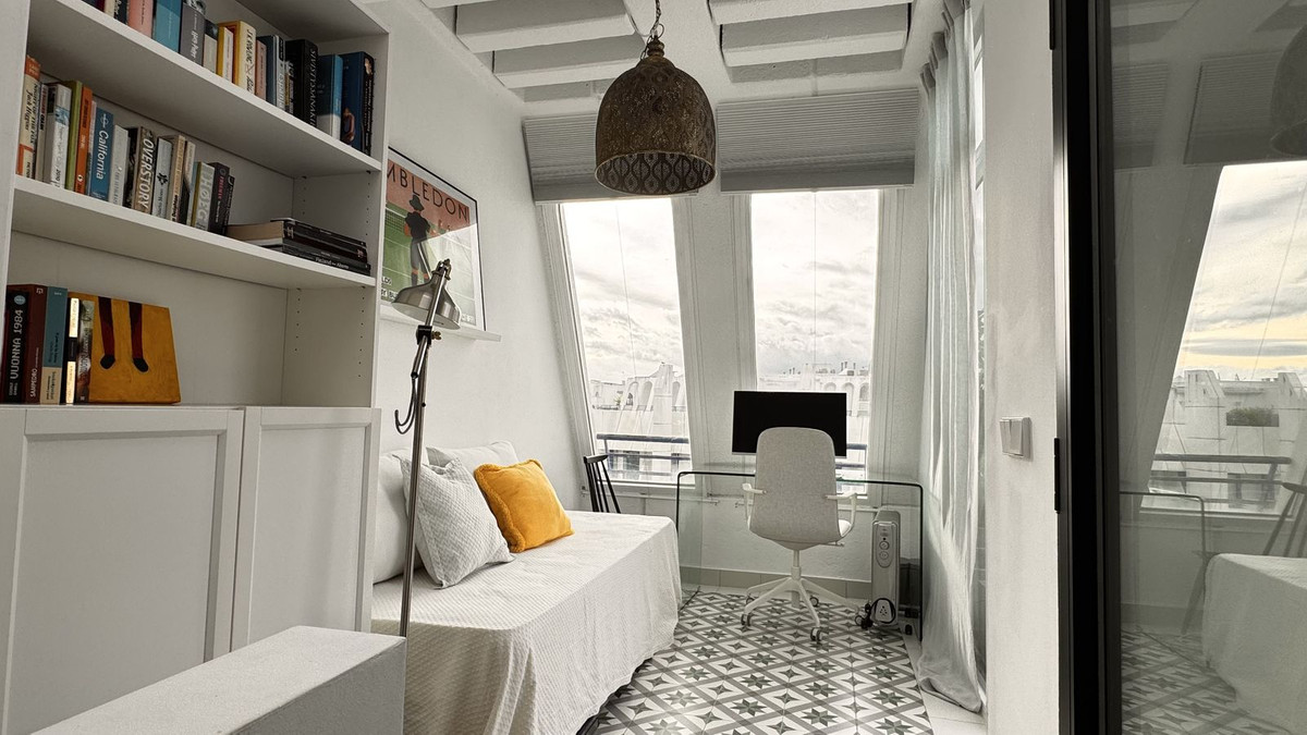 The rooftop terrace is undoubtedly the highlight: a spectacular private solarium with barbecue area and panoramic views of the sea and mountains. This level also includes an additional studio room, ideal as an extra bedroom, office or reading space.