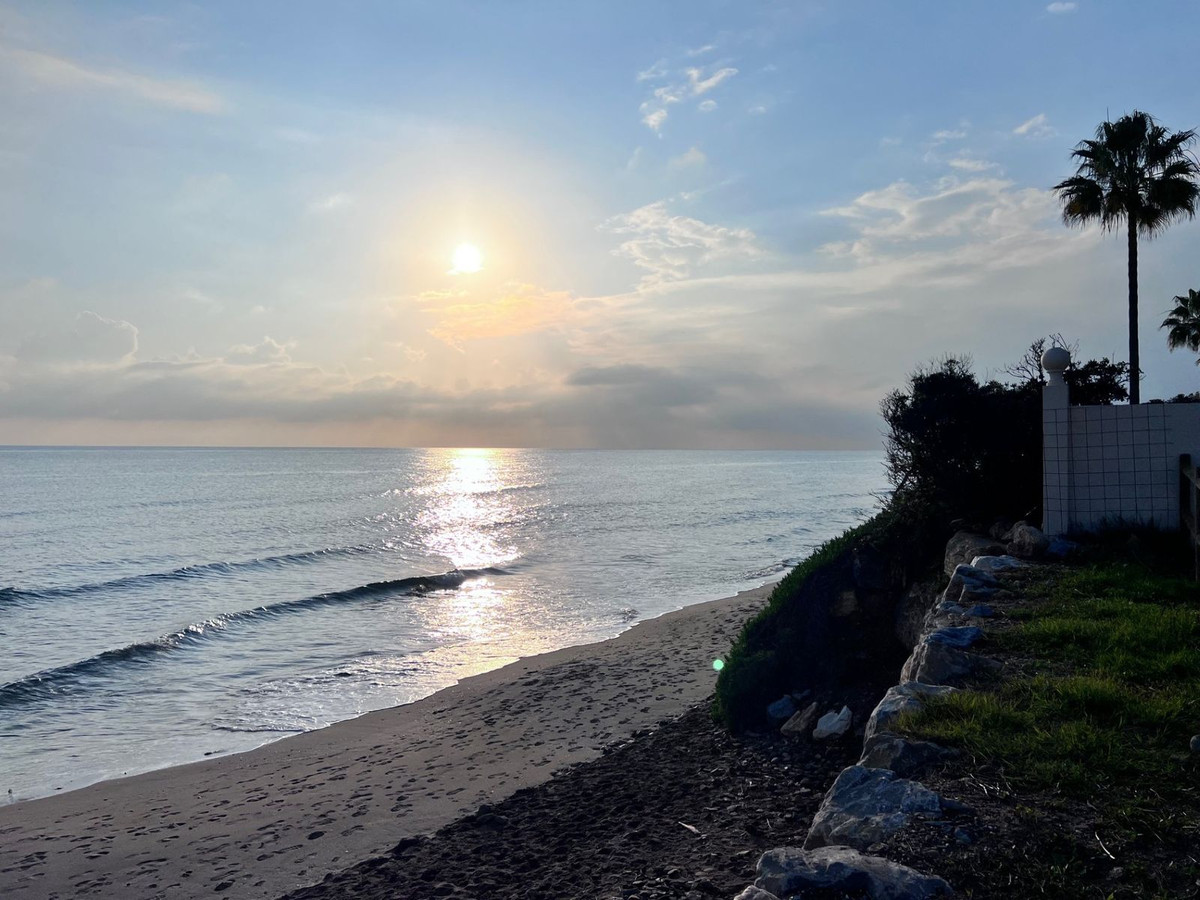 Bienvenue dans ce superbe duplex-penthouse en bord de mer, situé dans la très prisée résidence Carib Playa, « Fairways », à proximité de Cabopino et Elviria. Au rez-de-chaussée, ce magnifique appartement comprend deux chambres doubles, une à chaque extrémité. La chambre principale dispose de sa propre salle de bains privative, et une salle d'eau complète est accessible depuis la seconde chambre. La cuisine, entièrement équipée et neuve, comprend un four, un lave-vaisselle, un micro-ondes, etc. Attenante à la cuisine, une buanderie séparée abrite le lave-linge, le sèche-linge et des rangements. Le salon/salle à manger, en duplex avec sa double hauteur sous plafond, s'ouvre sur une double terrasse exposée plein sud, partiellement couverte et offrant une vue agréable sur les jardins communs et la piscine. Un escalier en bois mène au dernier étage, où se trouve une autre chambre double avec salle de bains privative (baignoire et douche) et fenêtre de toit Velux. Cette chambre bénéficie également d'un accès à sa propre terrasse exposée plein sud.