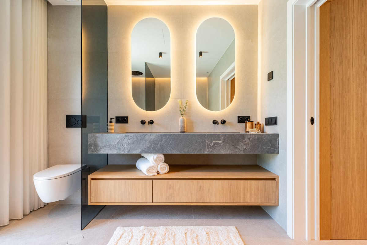 La villa propose quatre chambres, chacune avec sa propre salle de bains, offrant ainsi à chaque membre de la famille son propre espace de confort. Chaque chambre est équipée d'une climatisation centrale individuelle (chaud/froid) pour un confort personnalisé. La suite parentale comprend un coin maquillage, une salle de bains spacieuse avec douche et baignoire, et une vue imprenable sur La Concha – un doux rappel chaque matin de votre chez-vous.