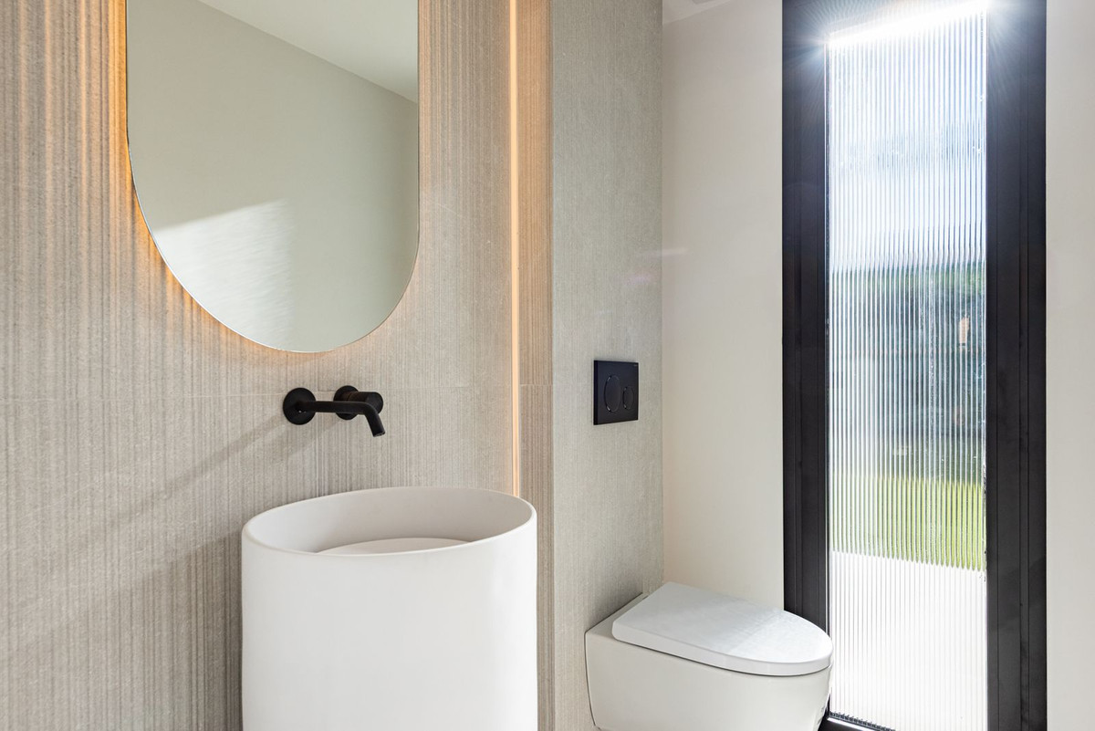 Le rez-de-chaussée s'articule autour d'un espace de vie ouvert et convivial, où la cuisine, la salle à manger et le salon communiquent harmonieusement. La cuisine, véritable cœur de la maison, se distingue par ses appareils Smeg, son cave à vin intégrée et son généreux plan de travail. Le salon, baigné de lumière grâce à sa double hauteur sous plafond, ses grandes baies vitrées donnant sur le jardin et son élégante cheminée à l'éthanol qui apporte chaleur et convivialité sans dénaturer le design épuré et moderne, bénéficie d'une atmosphère aérée tout au long de la journée.