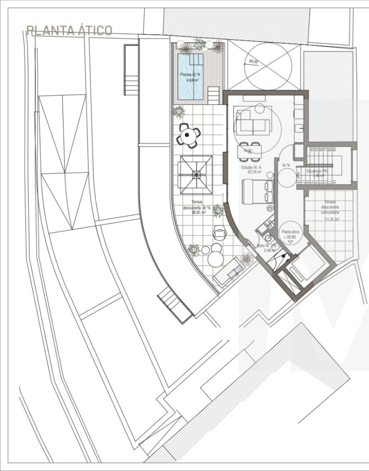 Prestations haut de gamme : L’étude résidentielle préliminaire inclut la possibilité de concevoir des appartements avec terrasses et piscine au dernier étage.