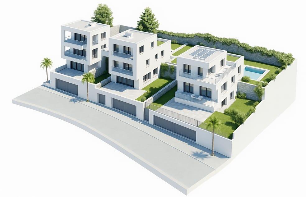 Magnifique villa moderne offrant des vues imprenables sur la mer, la montagne et la ville. Elle comprend un ascenseur privé, un garage, un niveau inférieur modulable pouvant servir de salle de sport, de cinéma ou de chambres supplémentaires, trois suites avec terrasse, un espace de vie ouvert comprenant salon et salle à manger avec cuisine intégrée, des toilettes invités, une véranda, une piscine privée, un jacuzzi et un solarium sur le toit.
